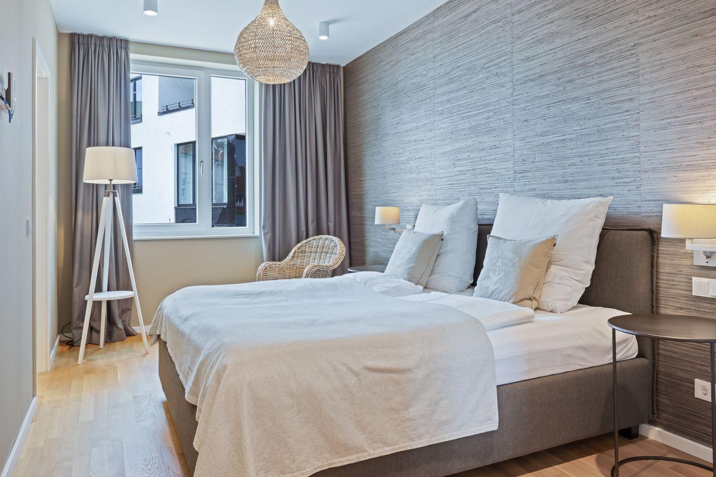 Die 125 m² große und geschmackvoll eingerichtete 4-Zimmer Maisonette-Wohnung ist für bis zu 6 Personen geeignet. Besonders hervorzuheben ist die private Sauna und die schöne Dachterrasse; hier könnt ihr bis in den Abend hinein die Sonne und das Meeresklima genießen. Überdies verfügt das moderne Apartment über den Luxus von zwei Bädern, Klimaanlage und ein Gäste-WC.