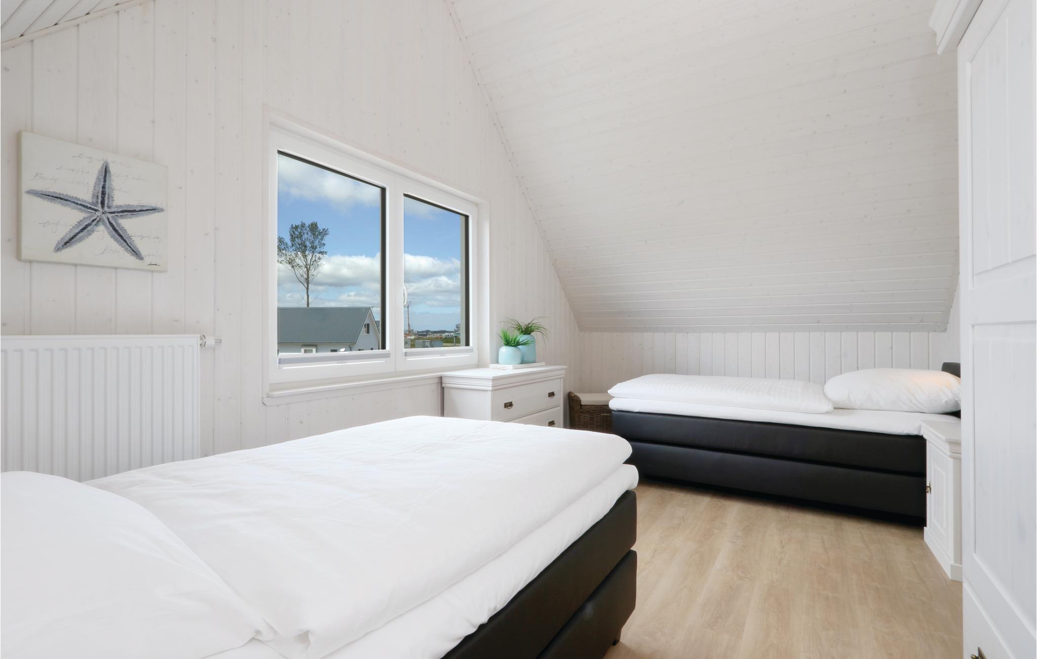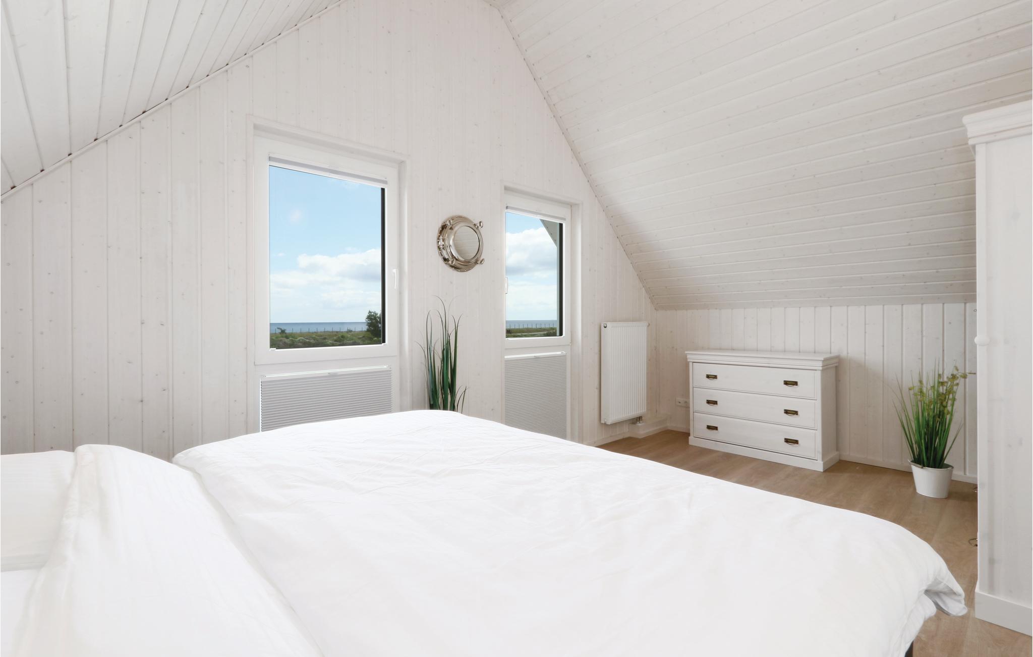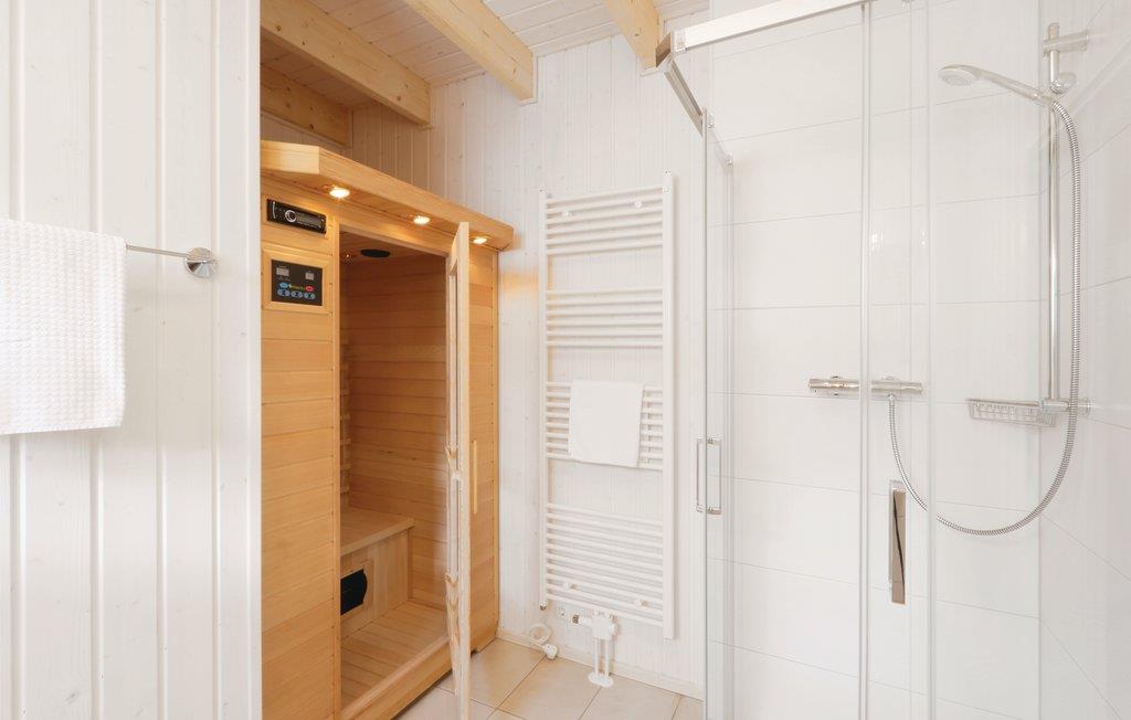 Glæd jer til masser af plads i dette feriehus på to etager, der ligger i den skønne feriepark OstseeResort Olpenitz. Det tager ikke ret lang tid at gå til den skønne Østersøstrand, ligesom Olpenitz marina med lystfartøjer der glider ud og ind og et livligt fritidsleben, ligger lige foran ferieparkens porte. På husets førstesal ligger begge de store soveværelser og et af badeværelserne. I badeværelset i stueplan ligger den private infrarøde varmekabine. Der mangler heller ikke en stor terrasse, hvor de lange afslappede feriedage kan nydes i solen. Ferieparken i Olpenitz er en rejse værd uanset årstid, tænd op i kaminen og slap af i varmen efter en lang spadseretur i den friske luft – eller hop en tur i saunaen.