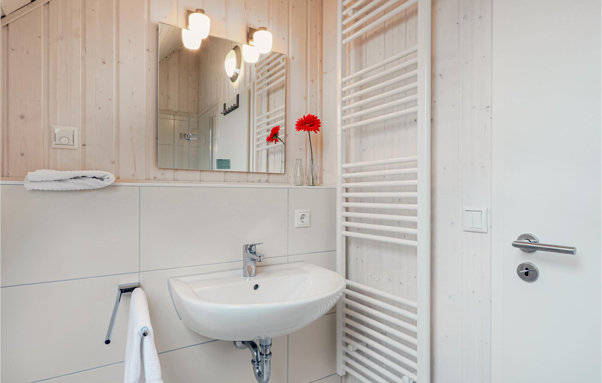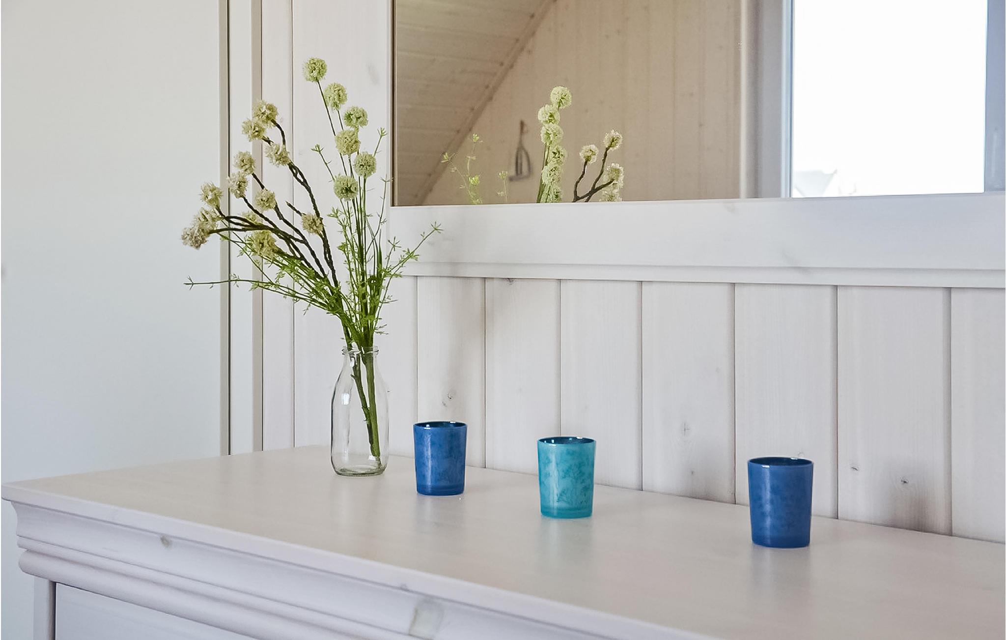 Med to badeværelser er feriehuset i Olpenitz også perfekt til to par eller en gruppe venner. Sofaen i opholdsstuen kan nemt laves om til to komfortable sovepladser.