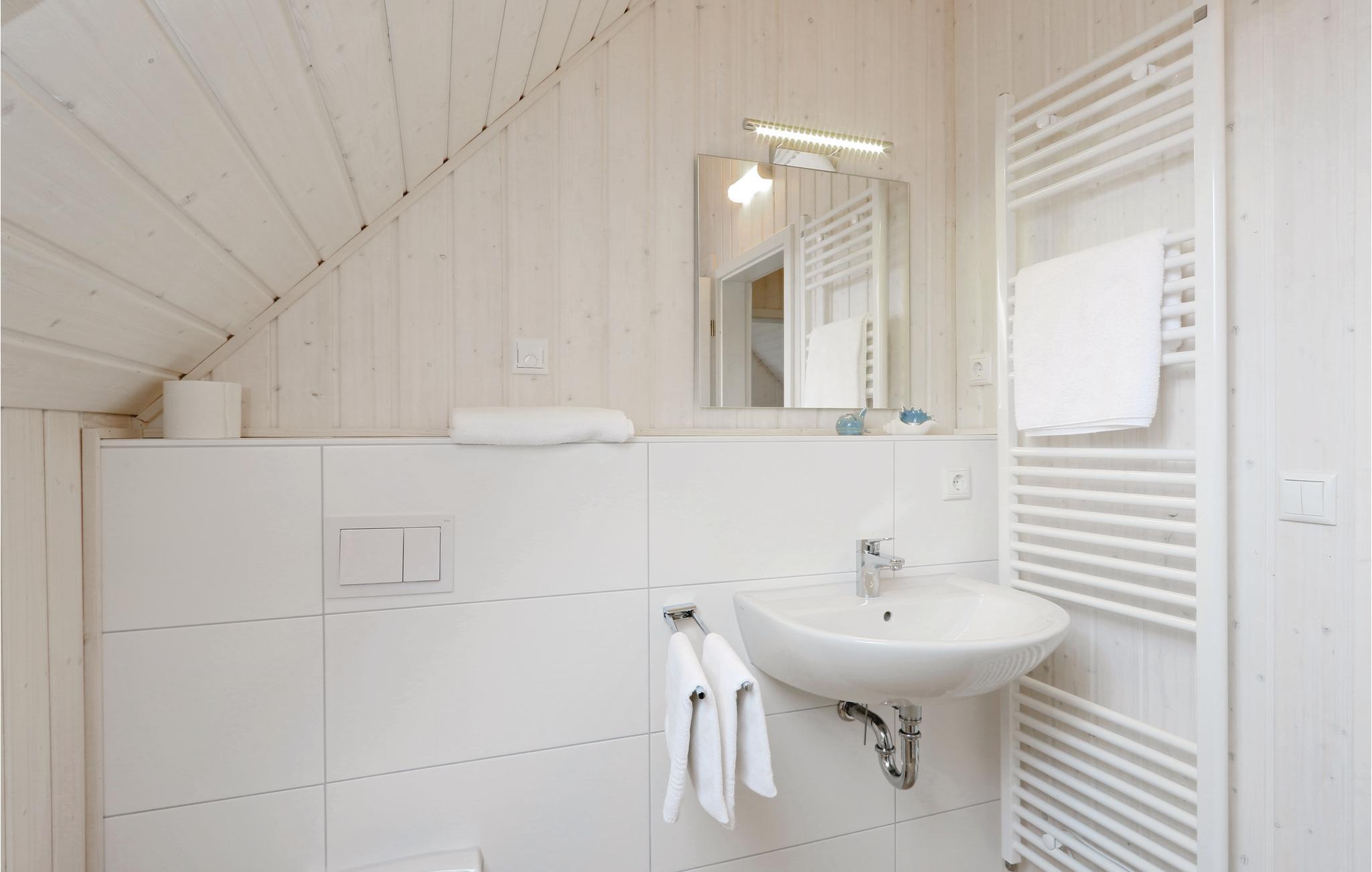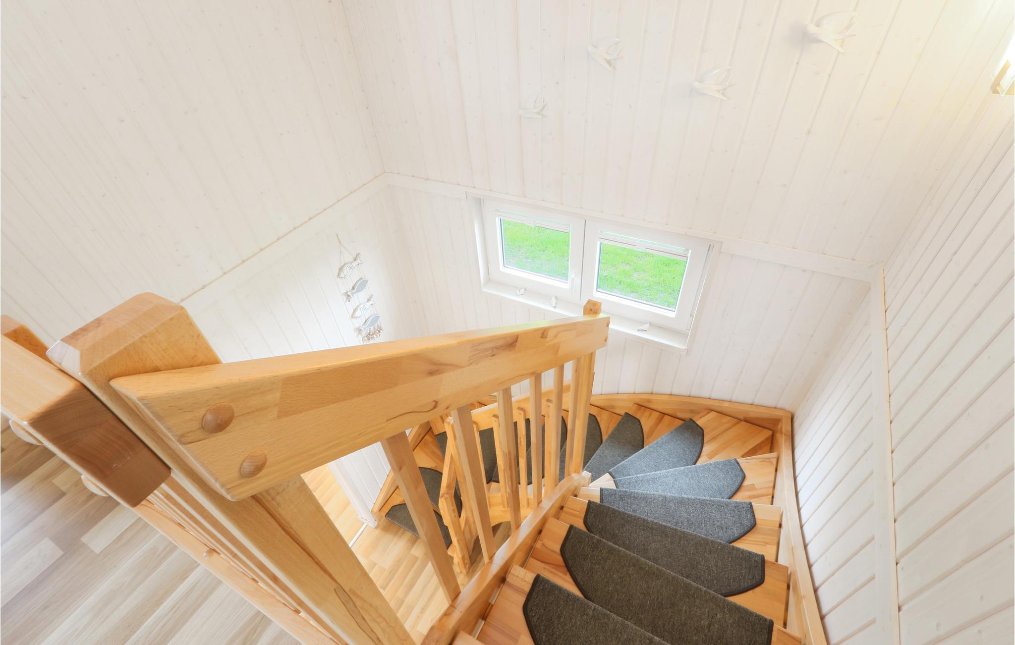 På husets førstesal ligger begge de store soveværelser og et af badeværelserne. I badeværelset i stueplan ligger den private infrarøde varmekabine. Der mangler heller ikke en stor terrasse, hvor de lange afslappede feriedage kan nydes i solen. Ferieparken i Olpenitz er en rejse værd uanset årstid, tænd op i kaminen og slap af i varmen efter en lang spadseretur i den friske luft – eller hop en tur i den infrarøde sauna.
