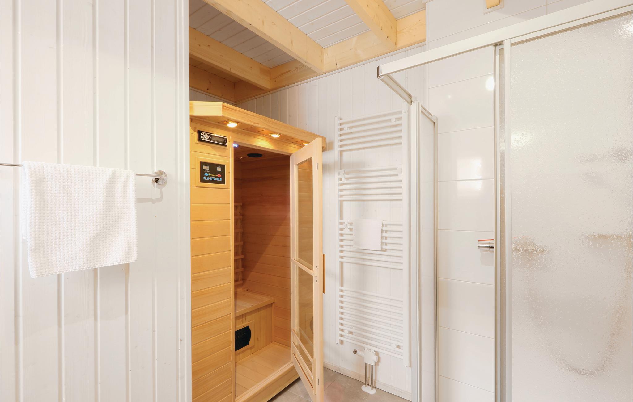 Tilbring jeres ferie i ferieparken OstseeResort Olpenitz i dette moderne og stilfuldt indrettede feriehus. Værelserne er fordelt på to etager. I opholdsstuen er der en brændeovn, hvor I kan varme jer efter en lang spadseretur langs kysten. På denne etage ligger også et badeværelse med infrarød varmekabine. Begge soveværelser er udstyret med hyggelige dobbeltsenge.