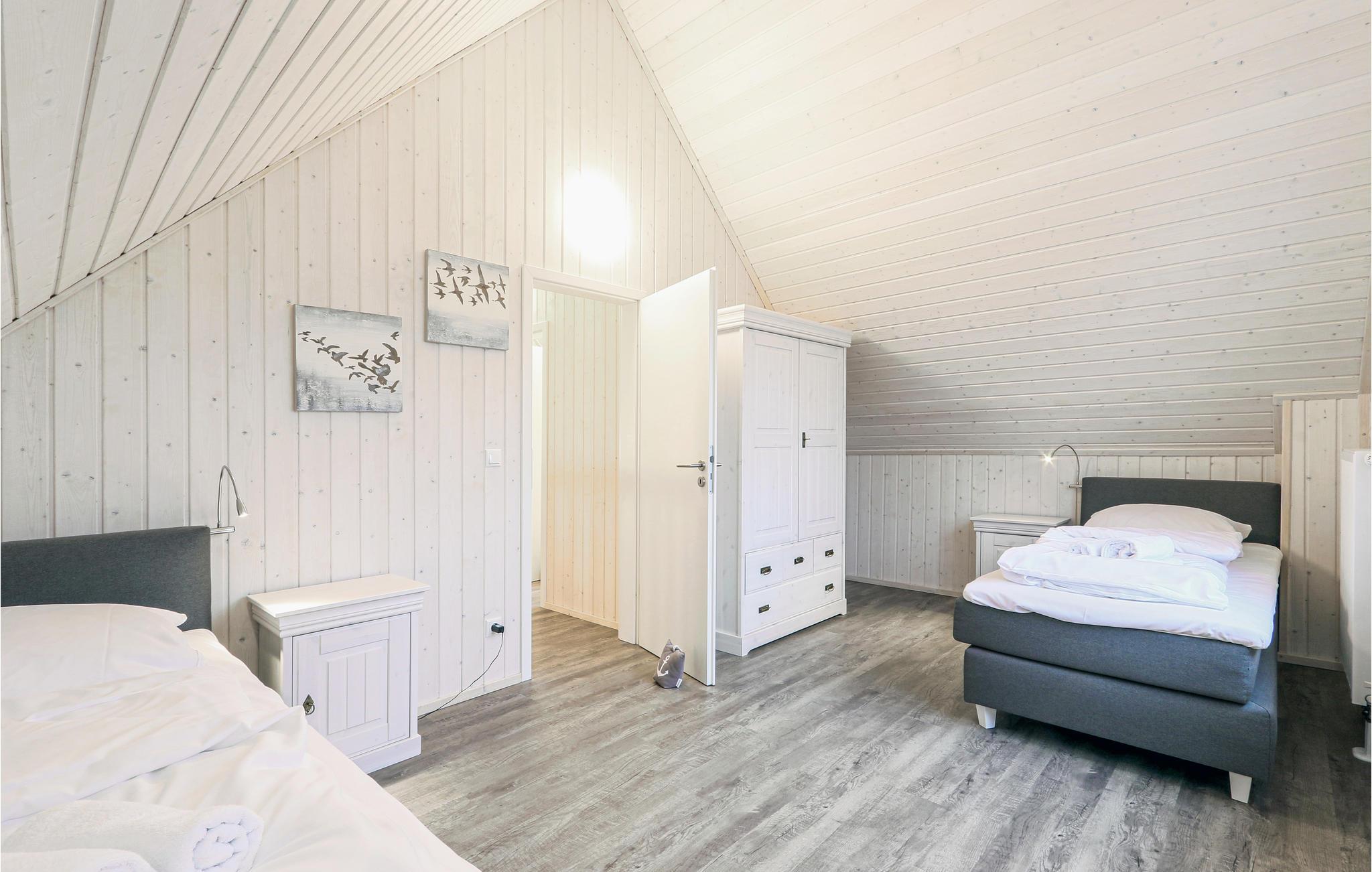 Feriehuset er moderne og hyggeligt indrettet og fordelt på to etager. Det ene soveværelser er udstyret med dobbeltseng, i det andet er der to enkeltsenge. I stuen er der en sovesofa, så måske især egner sig til familiens børn og unge.