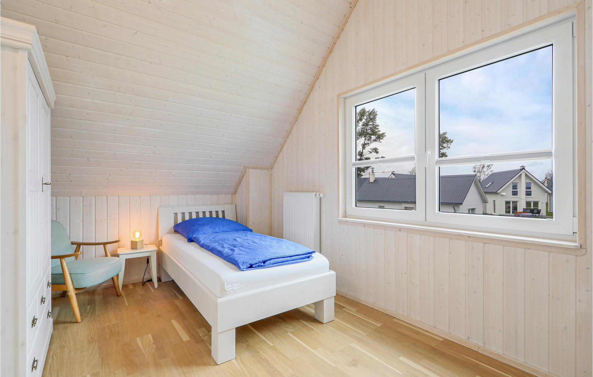 Huset er moderne og maritimt. Ovenpå er de to rummelige soveværelser og et af de to badeværelser. Feriehusets private infrarøde varmekabine ligger i badeværelset i stueetagen. Der er yderligere to sovepladser på sovesofaen i opholdsrummet. Stor terrasse til at nyde solen.