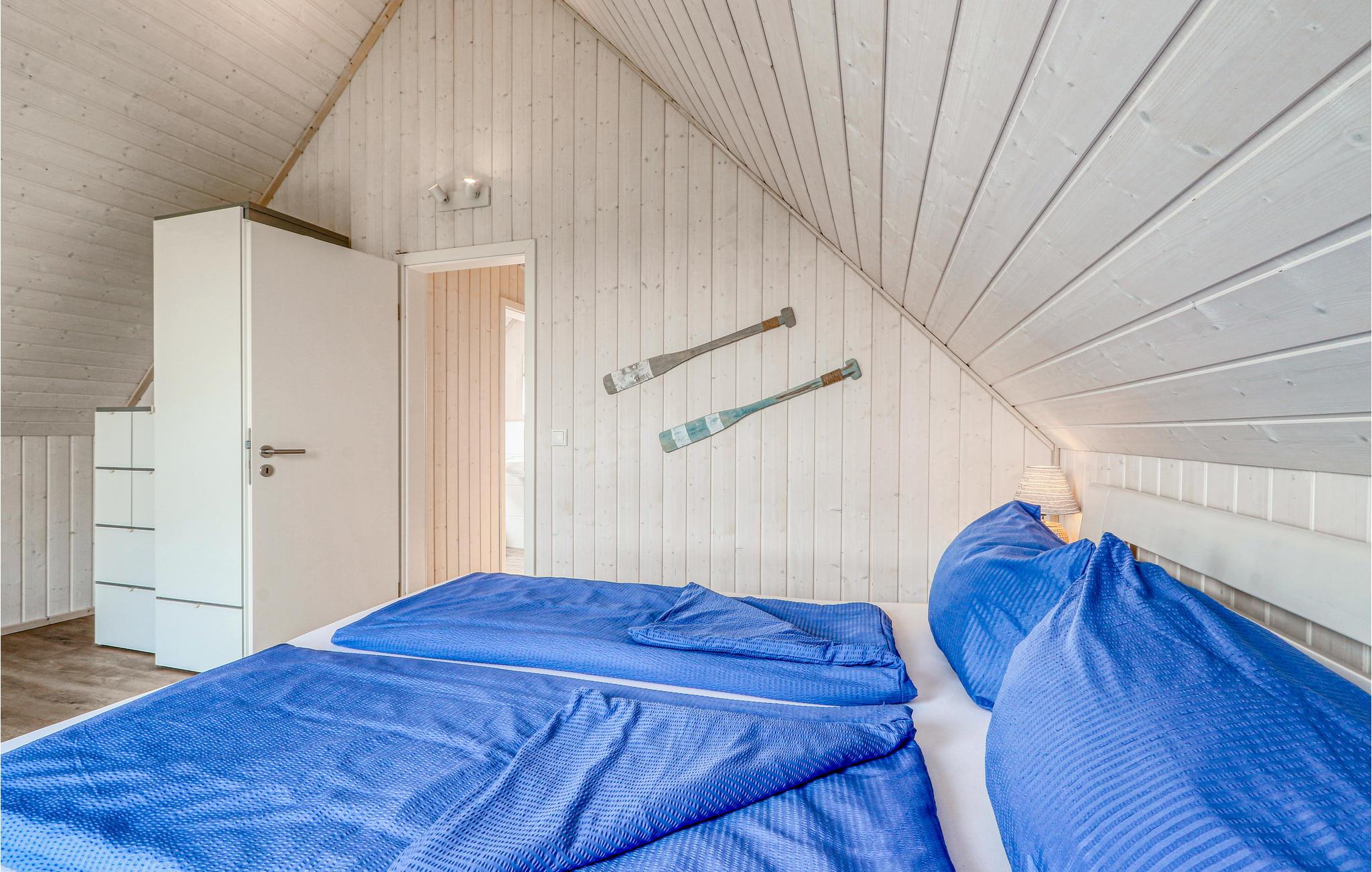 Feriehuset er moderne og hyggeligt indrettet og fordelt på to etager. Det ene soveværelser er udstyret med dobbeltseng, i det andet er der to enkeltsenge. I stuen er der en sovesofa, så måske især egner sig til familiens børn og unge.