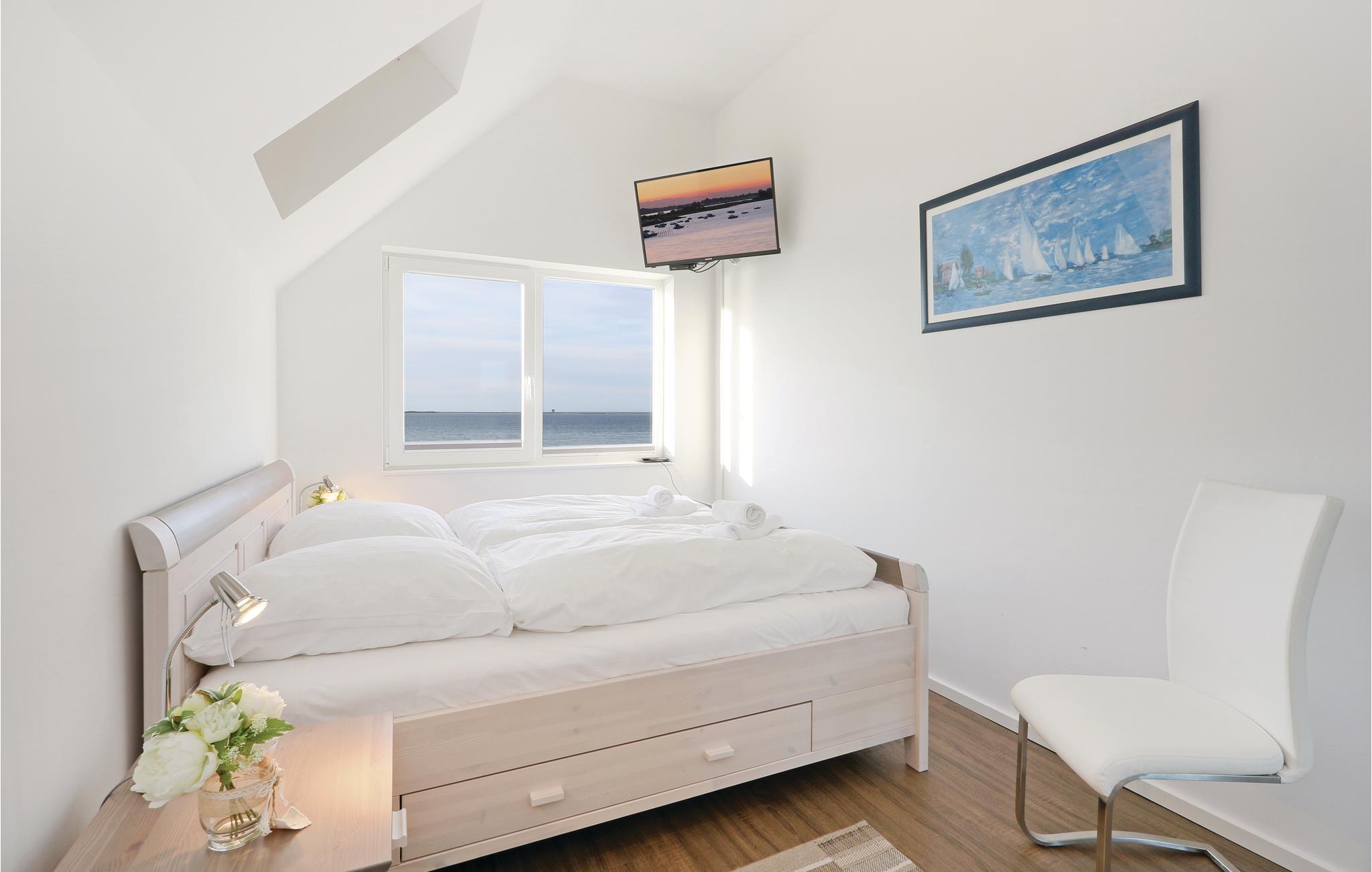 Den fordeler sig over to etager (1. + 2. sal). I denne lejlighed med panoramaudsigt, der ligger strategisk godt mellem Slien og Ostersøen: til den moderne og smukt sammensatte møblering hører et elektrisk klaver, der gør boligen perfekt til alle, der holder af at høre og spille musik. Lad jer fortrylle af den skønne udsigt til Sliens blå vand og gå en tur på stranden langs Østersøen. Store panoramavinduer giver masser af lys ind og blik ud til den skønne udsigt. På altanen er der et solrigt hjørne hvor I kan slappe af, ligesom whirlpool og sauna gør boligen til et godt rejsemål uanset årstid.