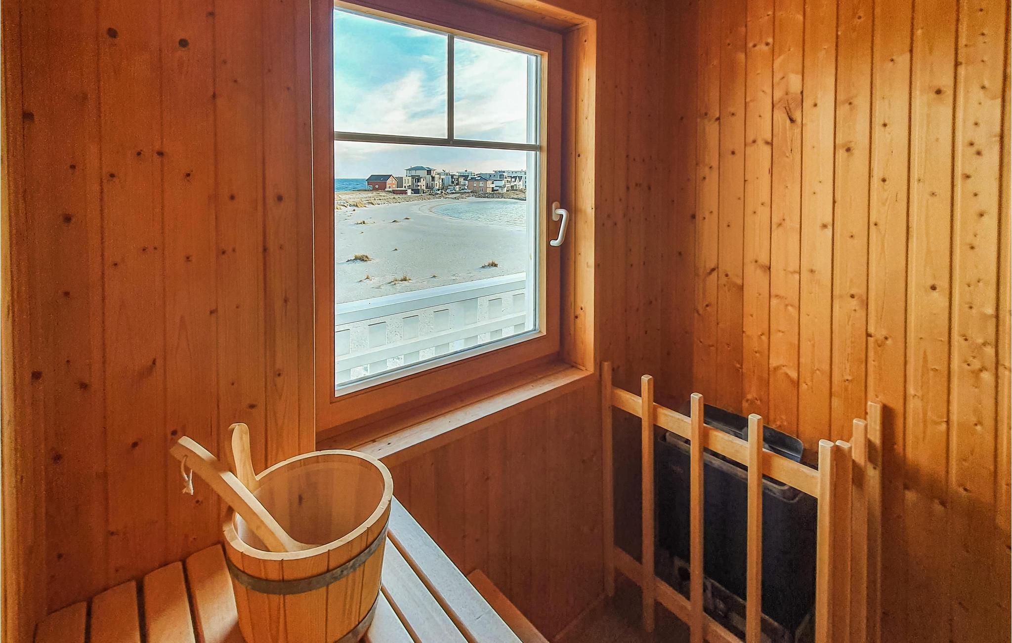 Findes der noget skønnere efter en lang dag ved havet, at lade de stive og kolde muskler varme og blive bløde igen i saunaen og samtidig kunne kigge ud over vandet? Ved siden af saunaen står et praktisk brusebad.