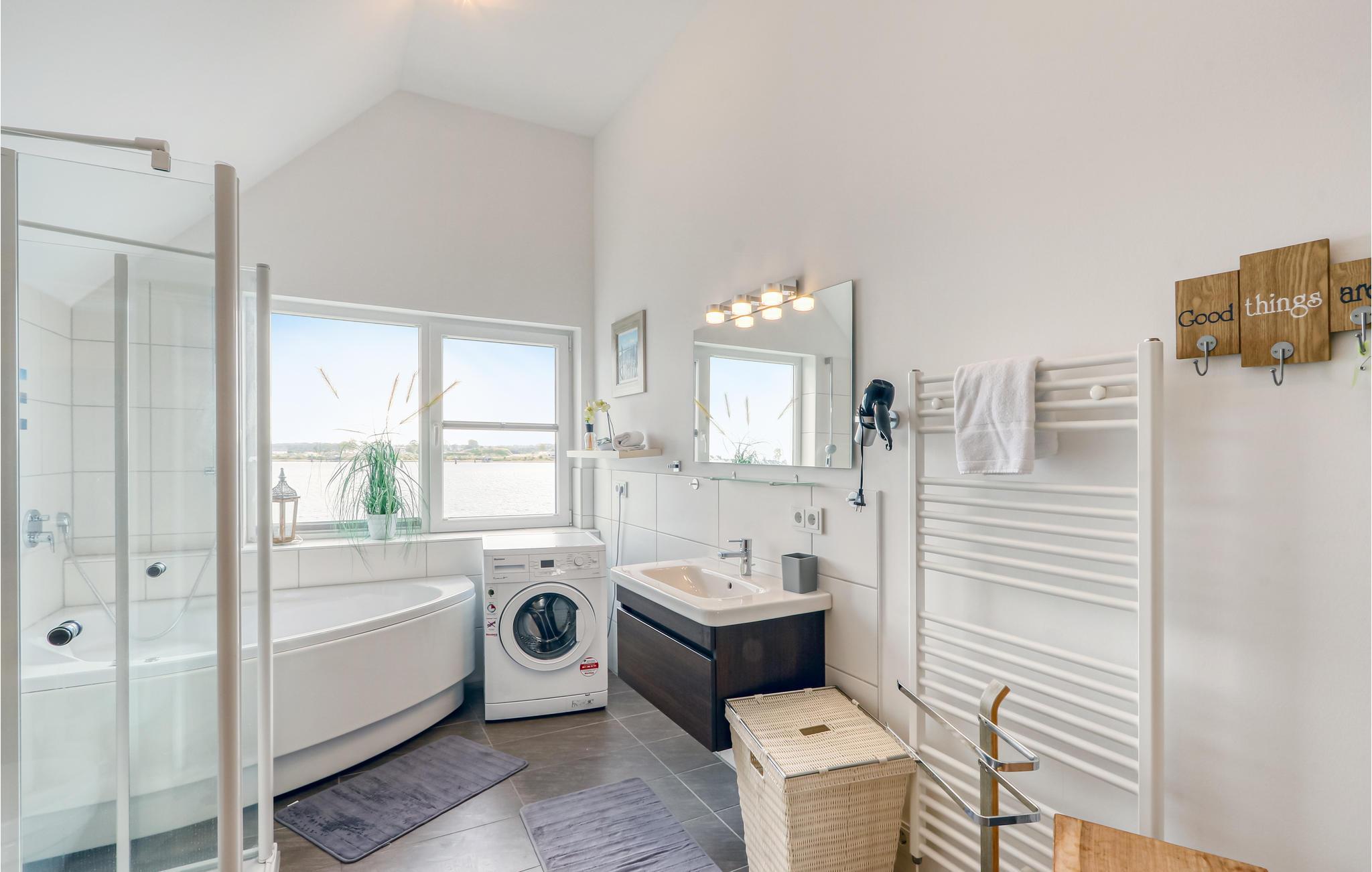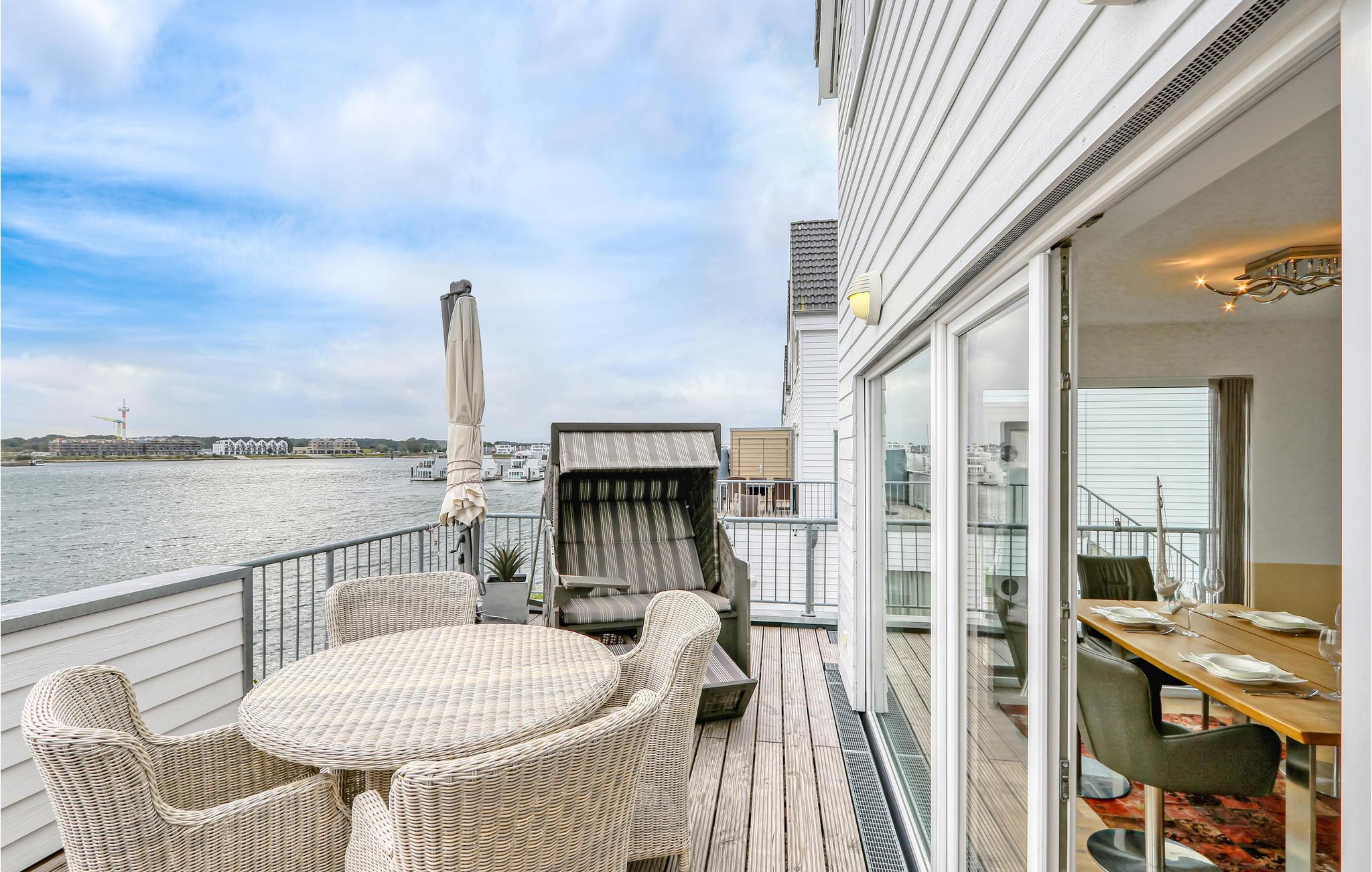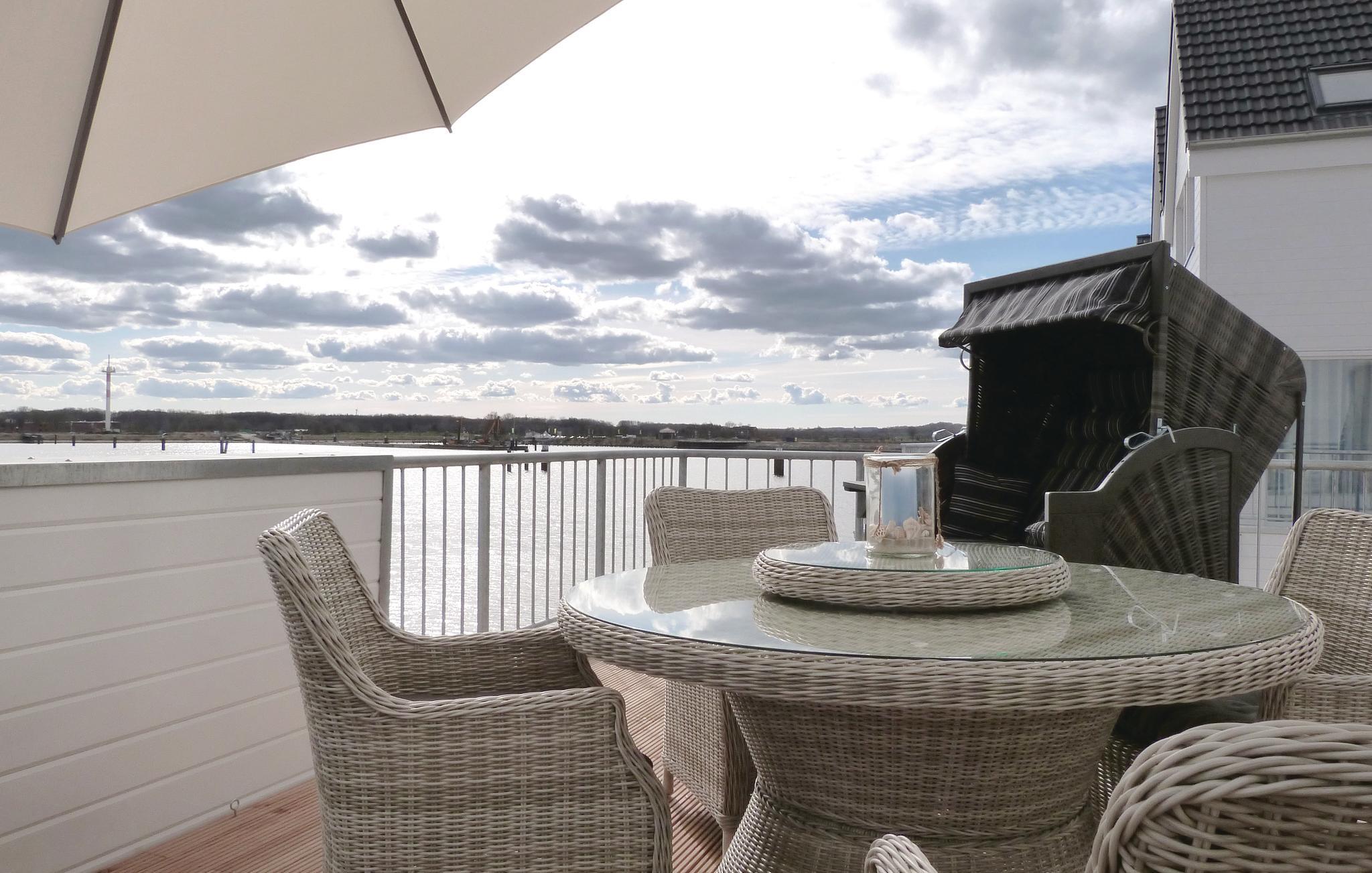 I kan næppe tilbringe ferien tættere på vandet: Fra næsten alle værelser i denne luksuriøse ferielejlighed i OstseeResort Olpenitz kan I se ud over det glitrende vand og de forbipasserende sejlbåde. Mod syd finder I lystbådehavnen, til siden Østersøen, og mod nord, bag husene, Slien, som her løber ud i Østersøen. Den sydvendte balkon er særligt rummelig og lægger op til at spise under åben himmel med havemøbler med lækre kvalitetsløsninger.