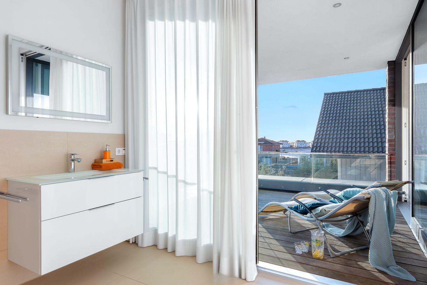 Willkommen im Ostsee-Ferienhaus „Miramar" – einem modernen und lichtdurchfluteten Urlaubsparadies, perfekt gelegen auf der Nordmole des Ostseeresort Olpenitz – nur ein paar Schritte vom Strand entfernt. Dieses Ferienhaus, direkt am Wasser, bietet nicht nur atemberaubende Panoramen der Ostsee und der Schlei, sondern auch einen unvergleichlichen Komfort und Luxus für einen Ostseeurlaub zu jeder Jahreszeit.