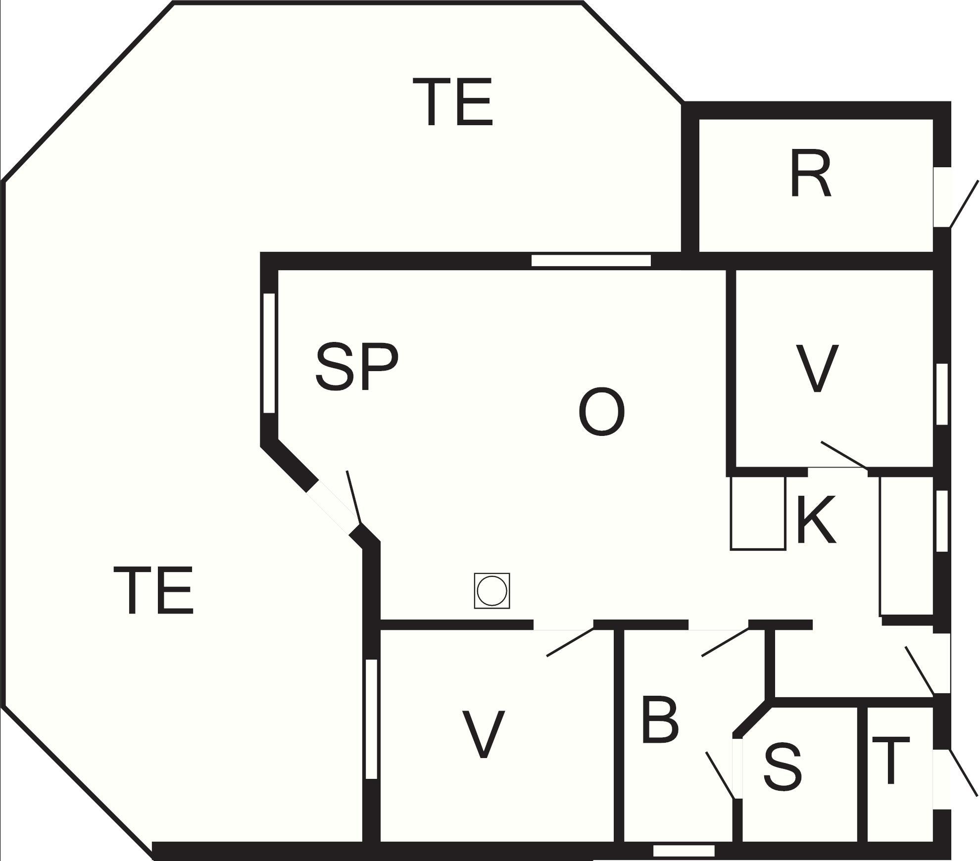 1 Opholdsstue: 26 m2, (1DO), brændeovn, stereoanlæg med cd, dvd-afspiller, tv, parabol, høj stol