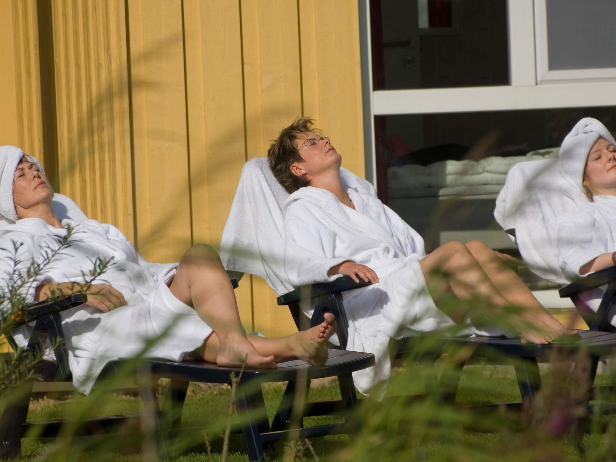 Dette førsteklasses sommerhus i dansk byggestil med wellness-udstyr ligger i anden række fra vandet i Vand- og Landskabsparken i Otterndorf. Her finder I alt til den helt rette wellnessferie og kan slappe af i dampsaunaen med dufte-effekt eller i spabadet til 5-7 personer, som er placeret under et stort ateliervindue med udsigt til stjernehimlen. Der er derudover en stor sauna med liggeplads til 4 personer, hvor I kan vælge mellem klassisk sauna, tropebad, soft-dampbad, aromabad og varmluftbad. Bagefter kan I tage et koldt brusebad og slappe af på massage/hvilesengen.