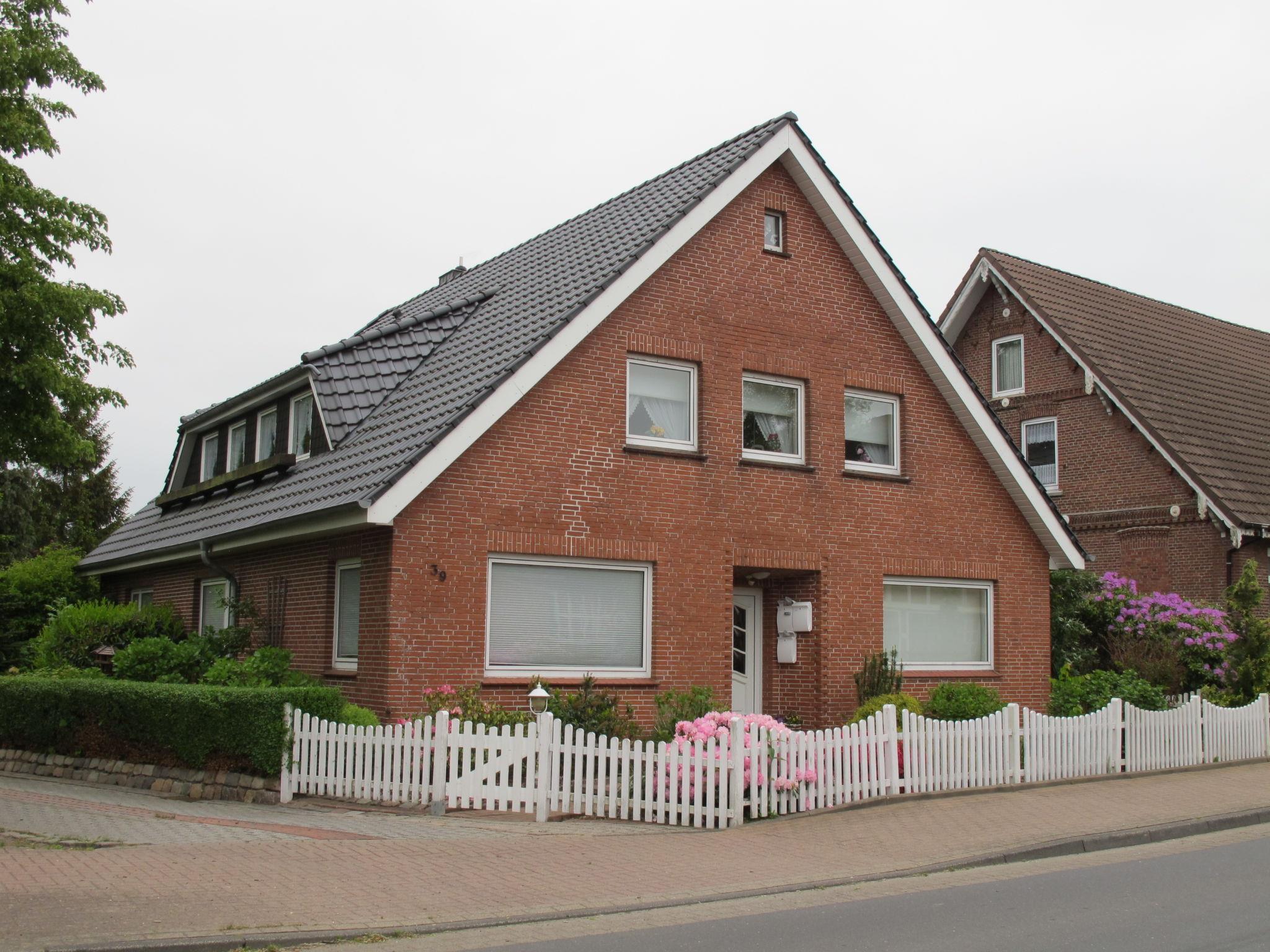 Neuenkirchen 4 km from Otterndorf: Apartment house "Söhle". In the centre of Neuenkirchen, 4 km from the centre of Otterndorf, 20 km from the centre of Cuxhaven, 5 km from the sea, 4 km from the lake, 5 km from the beach. For shared use: property 1'400 m2, garden with lawn. Patio, garden furniture, barbecue, children's playground (sandbox). In the house: central heating system, washing machine, tumble dryer (for shared use, extra). Parking at the house. Grocery 200 m, supermarket 4 km, restaurant 50 m, bakery, bus stop 200 m, grass beach "Otterndorf" 5 km, indoor swimming pool 4 km, bathing lake 4 km. Riding stable 4 km, children's playground 250 m.