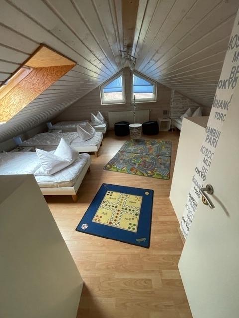 Außenbereich: Sandkiste,Schaukel,Kanu, 4 Meter Durchmesser großes Tramoplin.
