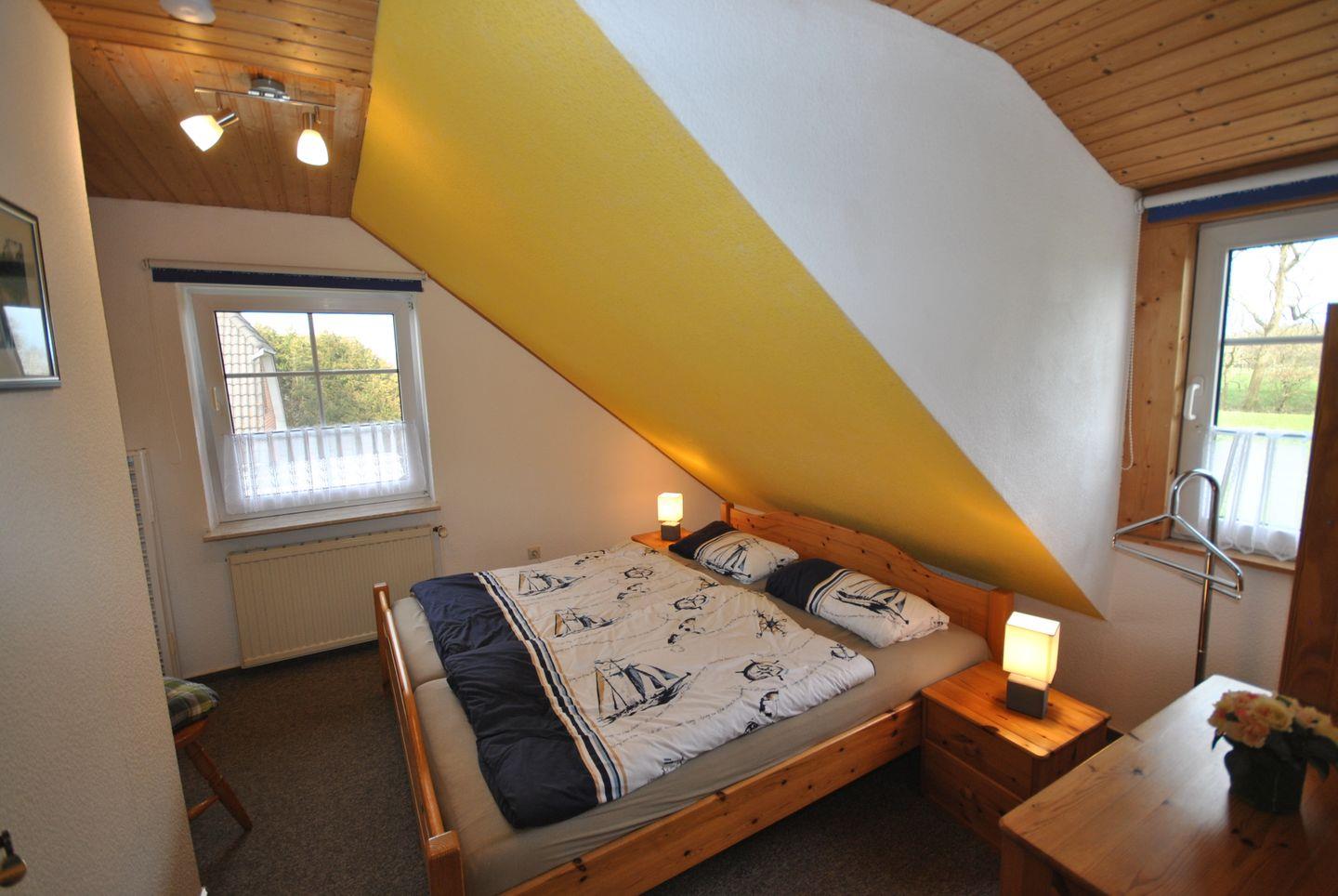 Das Ferienhaus Medemstern I ist eine komfortable und helle Feriendoppelhaushälfte mit überdachter Terrasse. In dem wunderschönen eingezäunten Garten haben Sie eine große Liegewiese mit viel Platz zum Spielen, Sonnen und Faulenzen. Das Haus liegt im Ferienpark „Achtern Diek“ ca. fünf Gehminuten von den Badeseen sowie vom Grünstrand und den Freizeitanlagen entfernt. Im Erdgeschoss befindet sich das geschmackvoll eingerichtete Wohnzimmer mit offener Essecke und Einbauküche. Das Wohnzimmer verfügt über einen Farb-TV mit Sat-Anlage und einem Kamin. Im Erdgeschoss befindet sich das Duschbad, ebenfalls eine kleine Abstellkammer, wo sich die Waschmaschine drin befindet. Vom Wohnzimmer aus gelangen Sie über eine Holztreppe zu zwei gemütlichen Schlafzimmern.