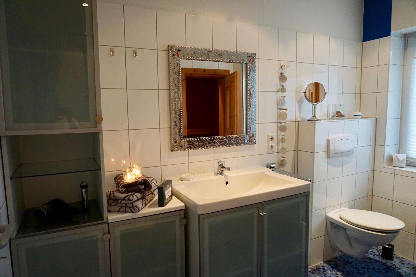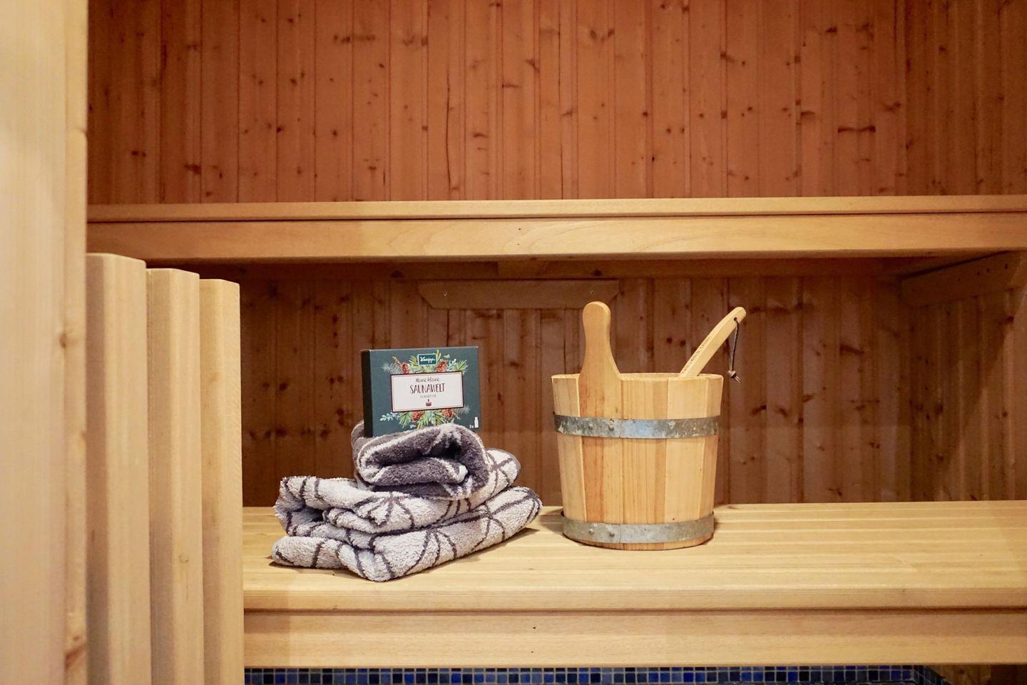 - Ein Wohlfühlbad mit Dusche und Sauna