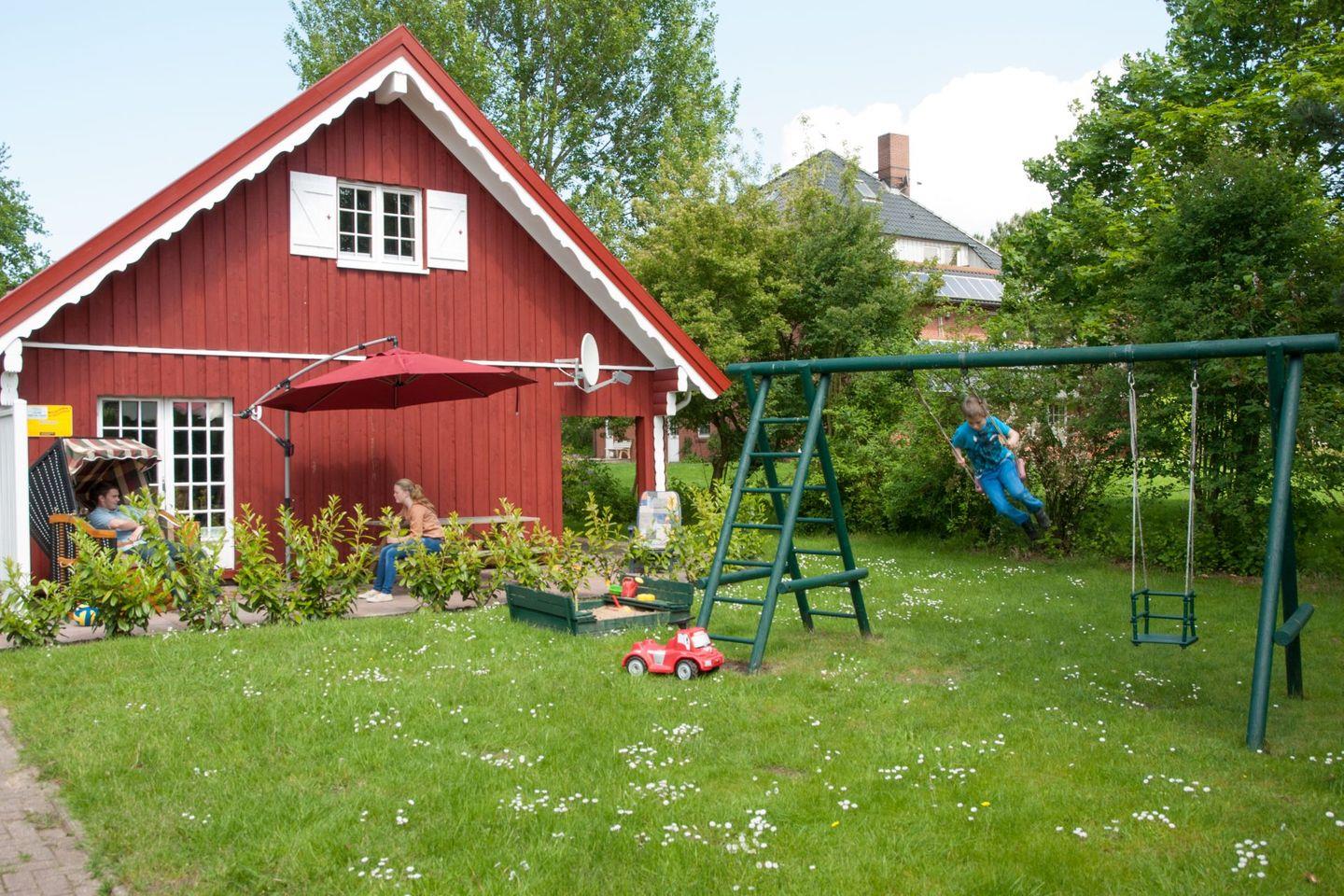 Sauna, Geschirrspülmaschine, Waschmaschine, Kinderbett und Hochstuhl, Gäste-WC, Farb-TV mit SAT-Anlage, überdachte Terrasse, Gartenmöbel, Grill, großer eingewachsener Garten, Strandkorb, Autostellplatz direkt am Haus
