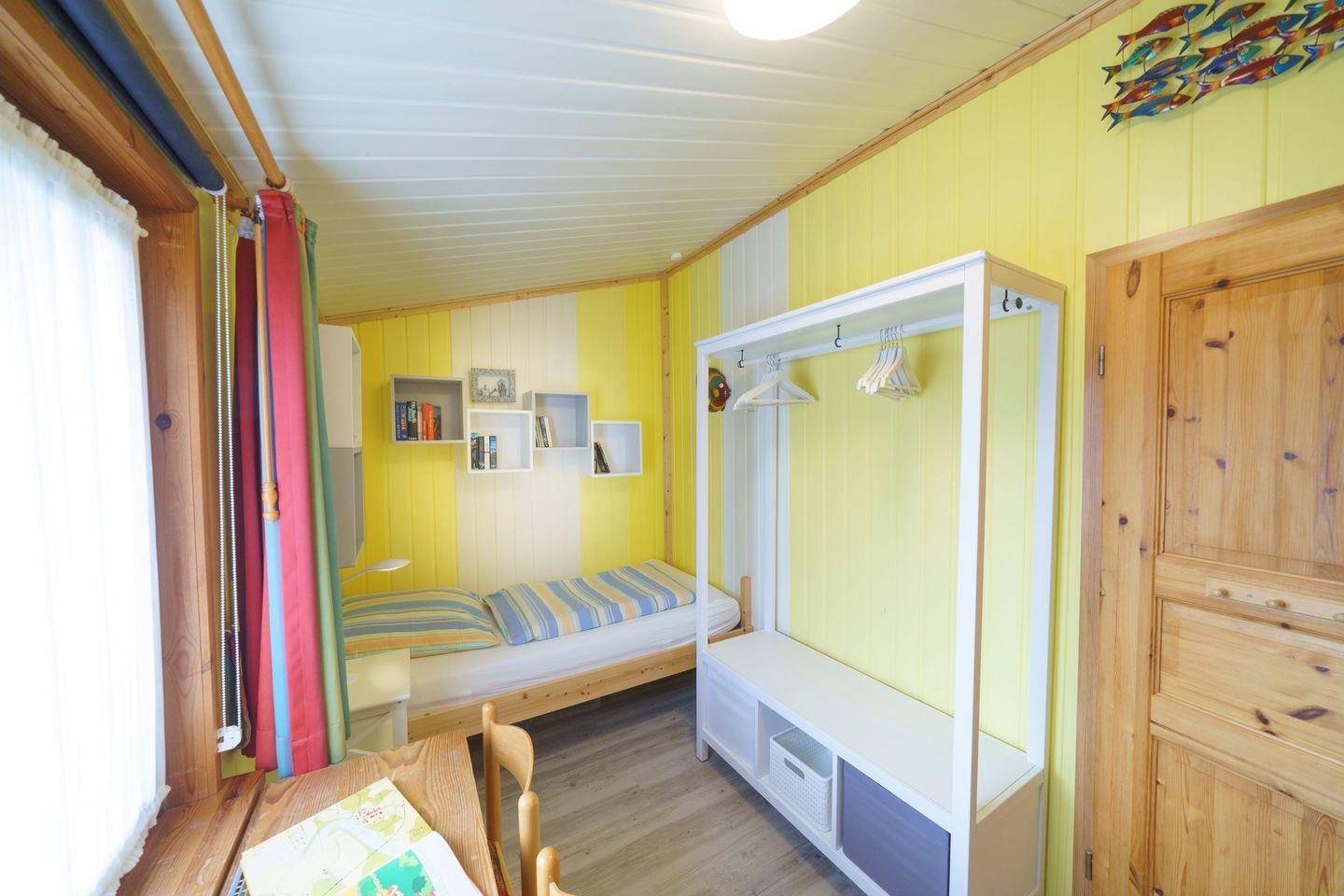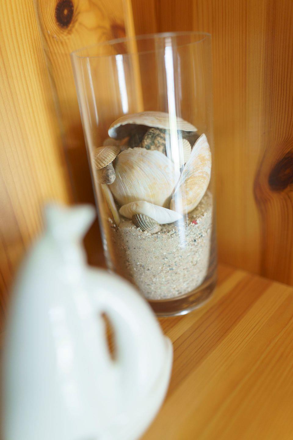 Ferienhaus Strandkorb ist ein komfortables, helles Holzhaus mit überdachter Terrasse. In dem wunderschönen Garten haben Sie eine große Liegewiese mit viel Platz zum Spielen, Sonnen und Faulenzen. Für die Kinder sind ein Sandkasten und eine Schaukel vorhanden. Das Haus liegt im Ferienpark „Achtern Diek“ ca. fünf Gehminuten von den Badeseen sowie vom Grünstrand und den Freizeitanlagen entfernt. Im Erdgeschoss befindet sich das geschmackvoll eingerichtete Wohnzimmer mit offener Essecke und Einbauküche. Das Wohnzimmer verfügt über einen Farb-TV mit Sat-Anlage, einen DVD-Player und einem Radio. Das Kinderzimmer ist mit einem Etagenbett sowie einem Einzel stehenden Bett ausgestattet und bietet Platz für drei Kinder oder Erwachsene. Im Flur befindet sich das Duschbad und nebendran das gemütliche Schlafzimmer mit dem Doppelbett.