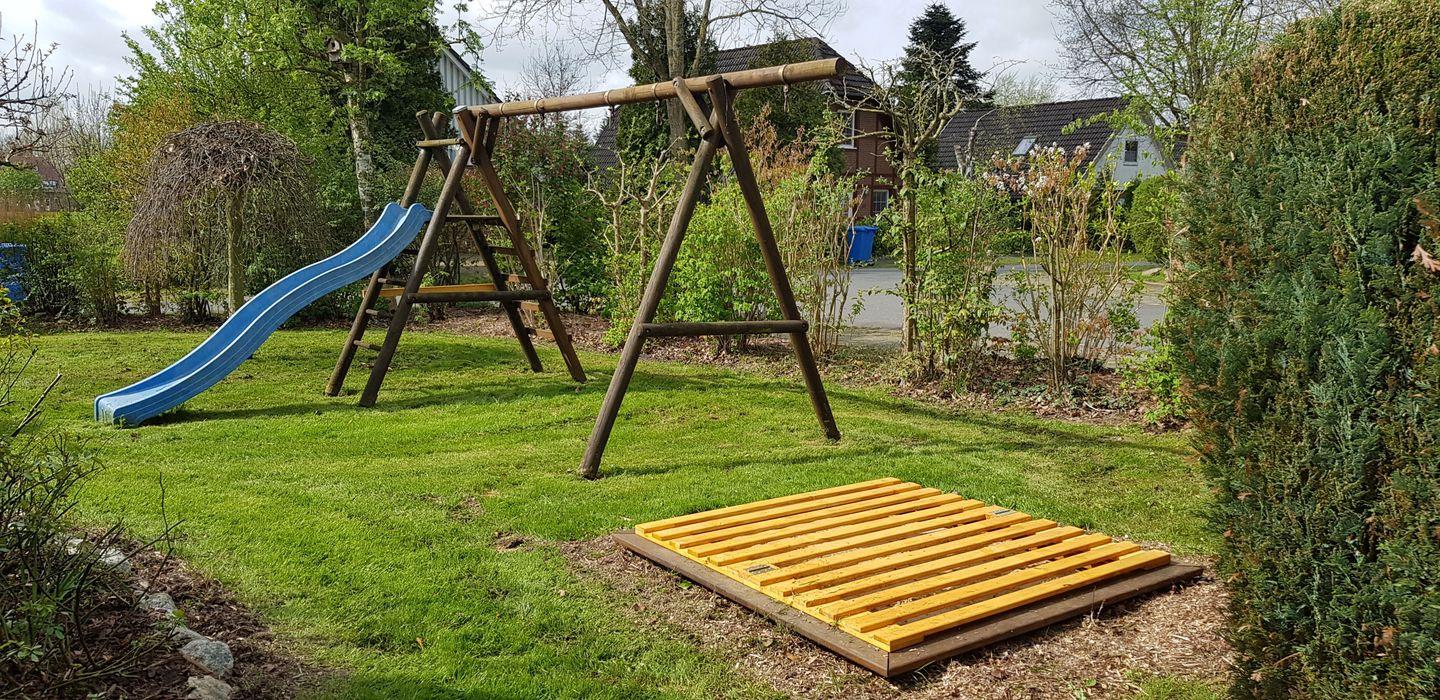 Waschmaschine, Wäscheständer, Kinderbett, Hochstuhl, Gartenmöbel, Gartengrill sowie ein Autoabstellplatz direkt am Haus.