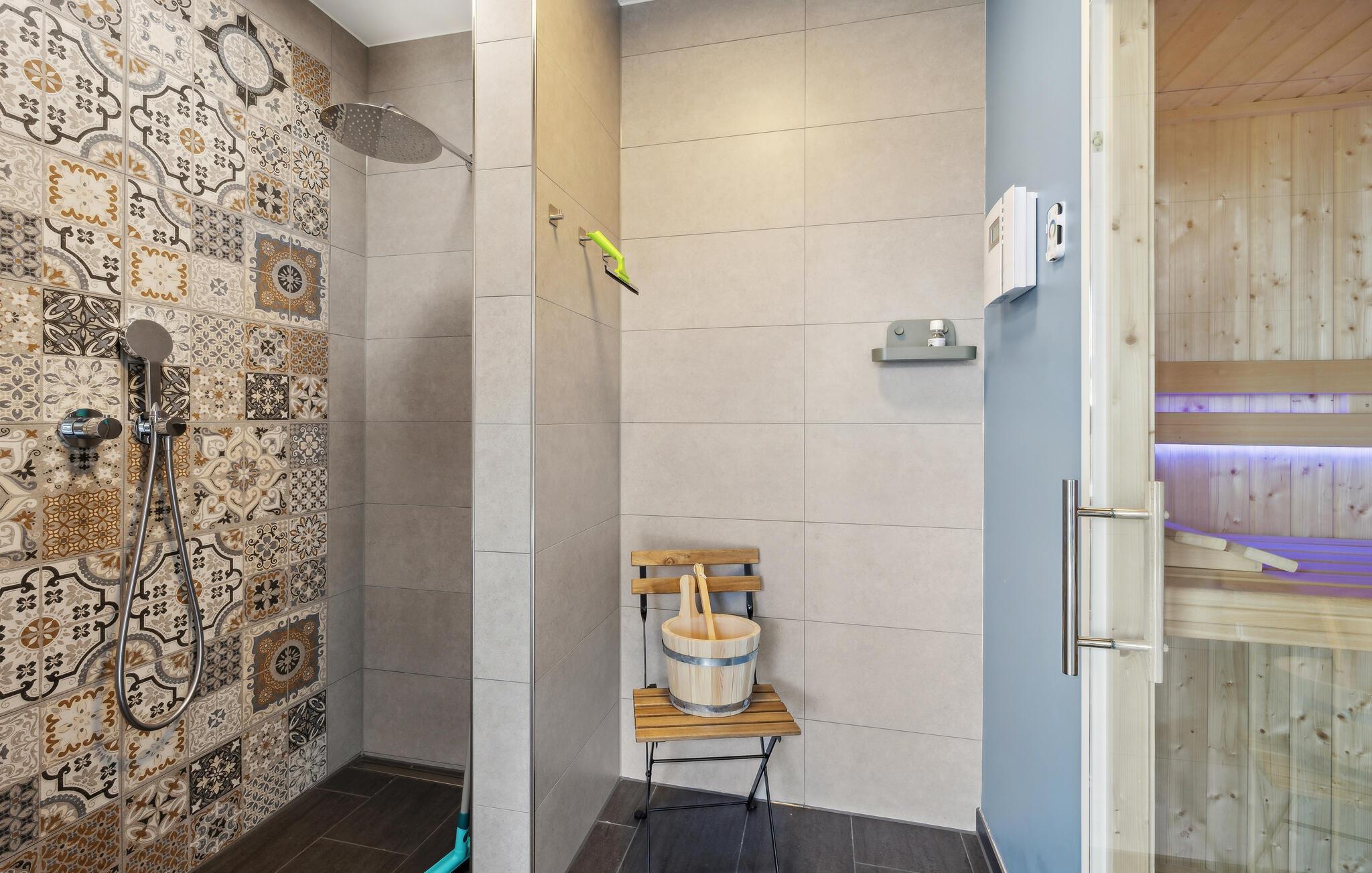 Velkommen til en komfortabel ferie i denne førsteklasses ferielejlighed. jeres indkvartering tilbyder den ideelle kombination af komfort og moderne faciliteter for at gøre jeres ophold så behageligt som muligt. Begynd dagene med et forfriskende bad i det fælles spabad i haven. Nyd freden og roen og den smukke udsigt over de grønne omgivelser. I stuen finder I en indbydende sofa til afslapning og et flot spisebord til at nyde måltider sammen. Den varme sauna giver afslapning om aftenen.