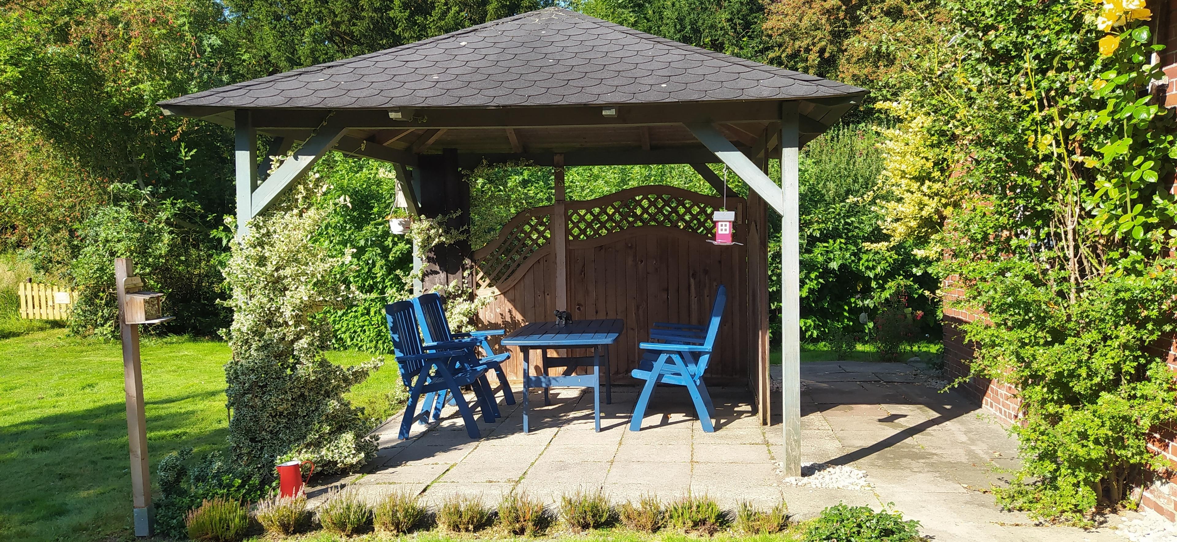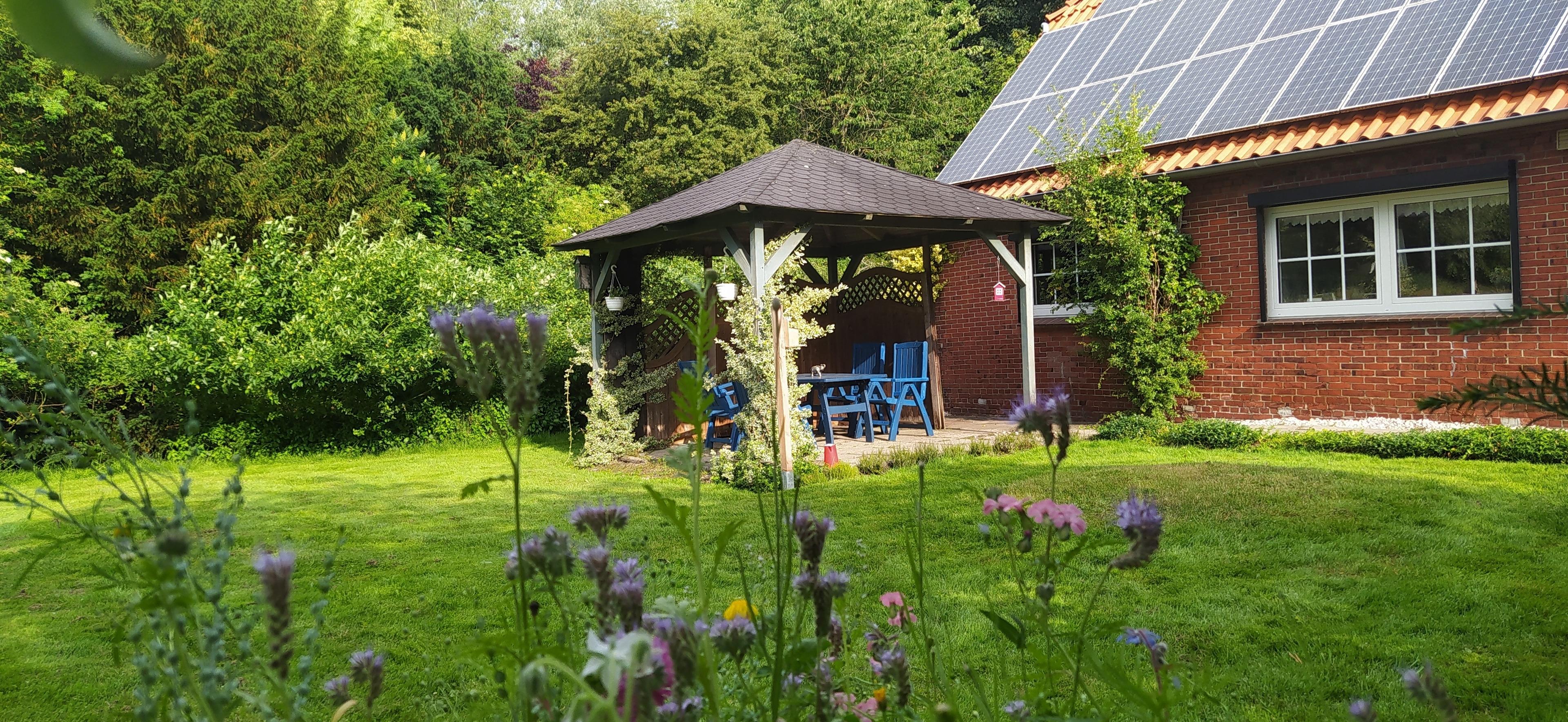 Liegewiese, Terrasse, Grillecke, Raucherecke.