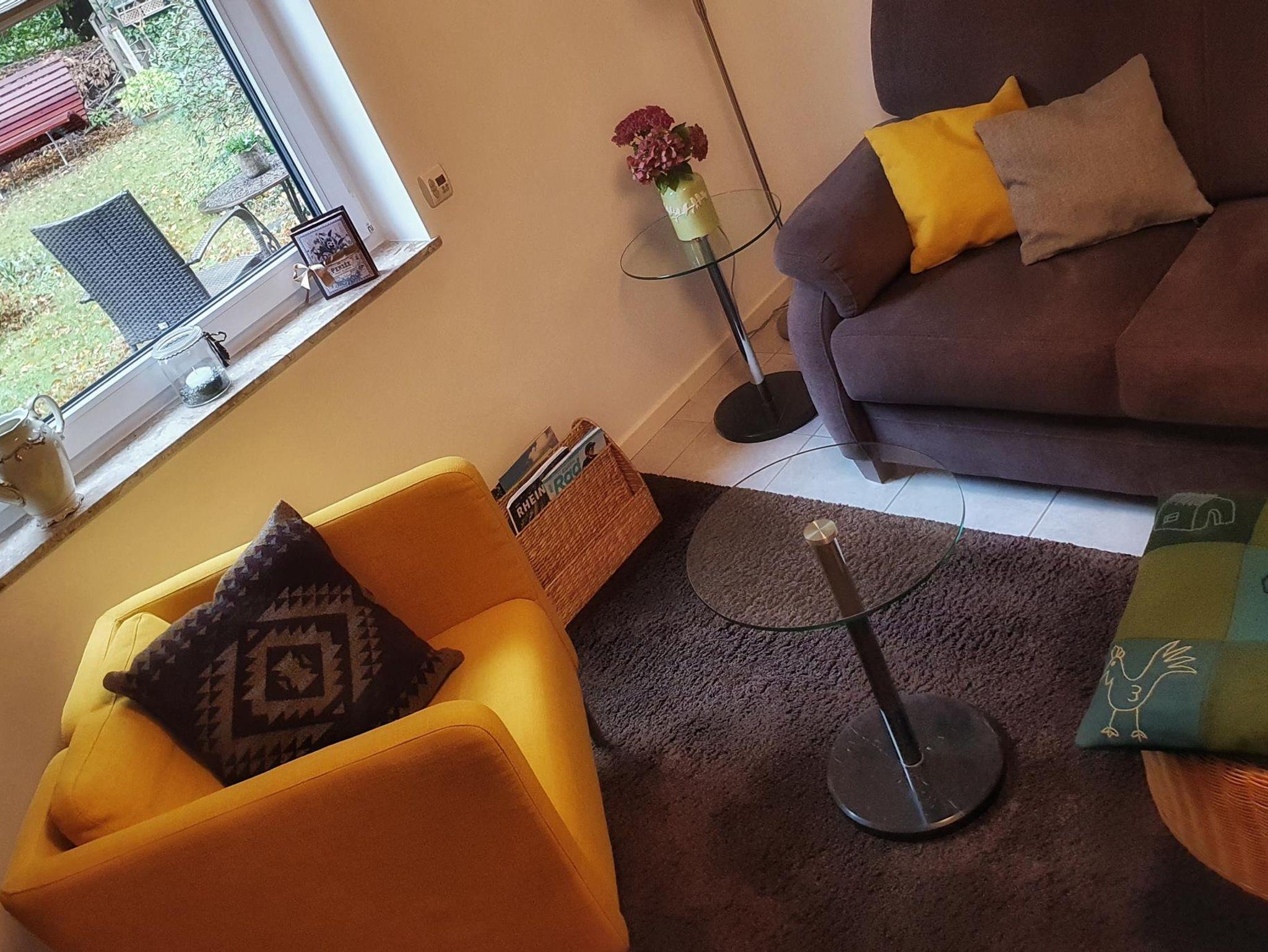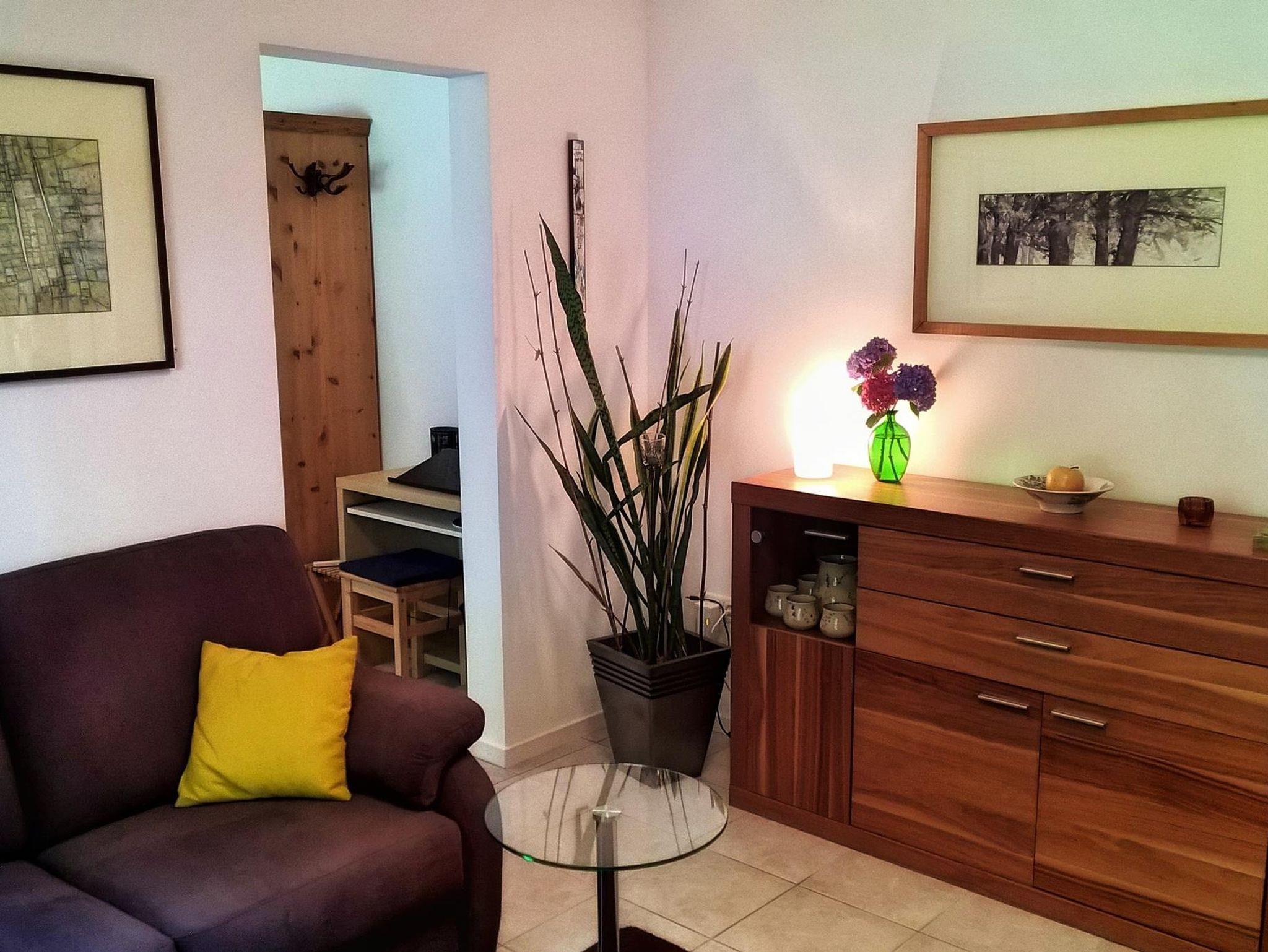 Unsere gemütliche Nichtraucher Ferienwohnung mit 46 m² ist ideal für 2 Personen. Die Wohnung hat einen separaten Eingang und alle Zimmer haben einen wunderbaren Ausblick in einen natürlich angelegten Garten, den Wald und das benachbarte Künstleratelier.