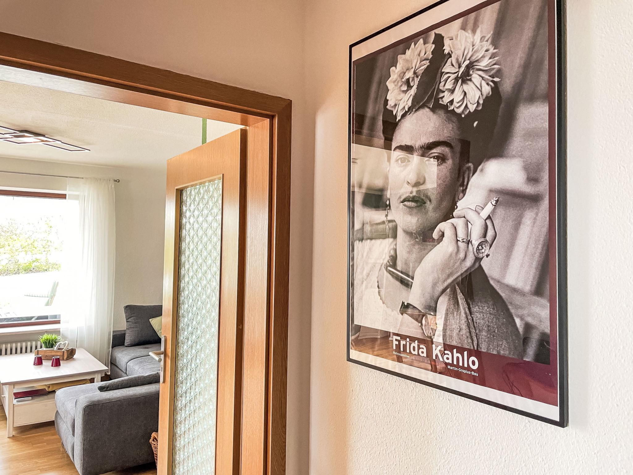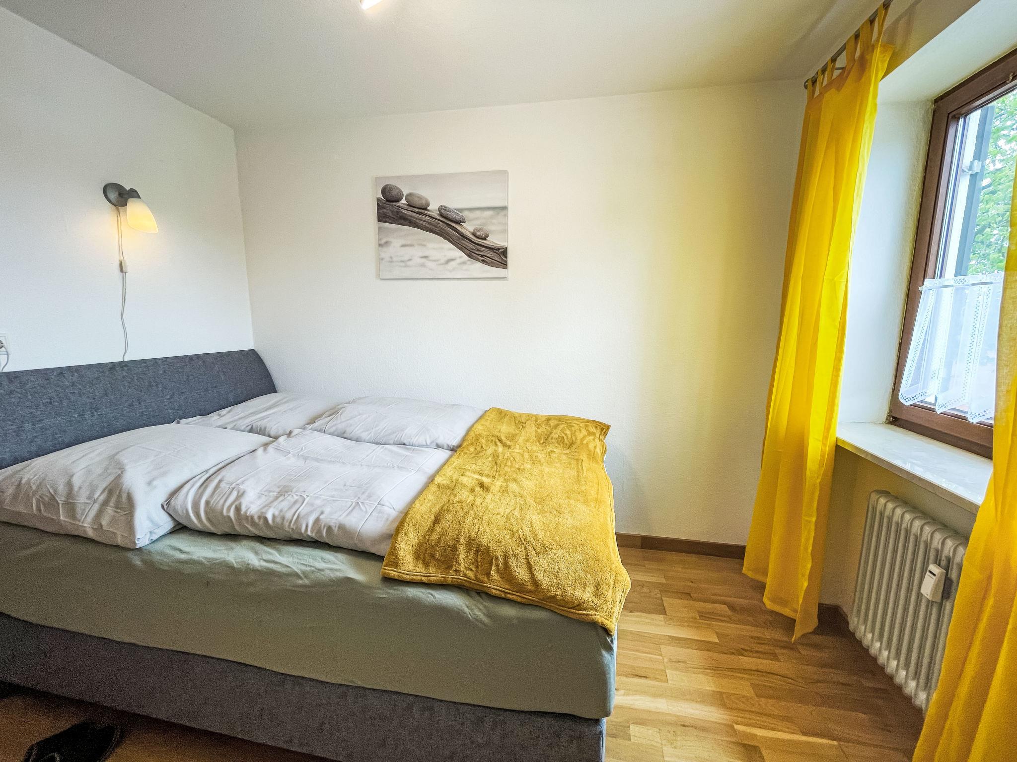 "Auszeit", 3-room apartment 70 m2, on the upper ground floor. Beautiful and cosy furnishings: living/dining room with Scandinavian wood stove and satellite TV. Exit to the terrace. 1 room with 1 double bed. 1 room with 1 french bed (140 cm, length 200 cm). Kitchen (oven, dishwasher, 4 ceramic glass hob hotplates, toaster, kettle, microwave, electric coffee machine). Shower/WC. Large terrace 18 m2, roofed, garden. Terrace furniture, barbecue. Facilities: Internet (WiFi, free). Parking, garage space n 16. Please note: non-smoking house. Maximum 1 pet/ dog allowed. Smoke alarm.