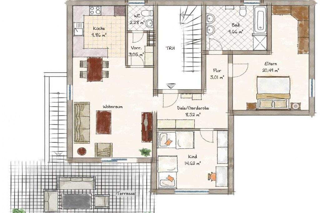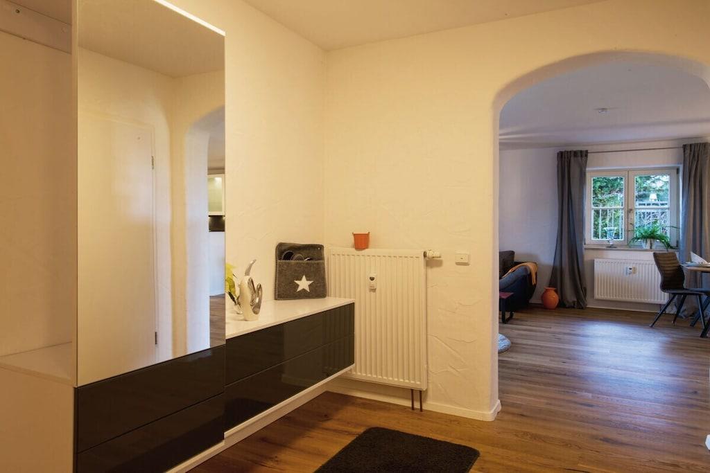 Ferielejligheden blev fuldstændig renoveret i 2019, elegant nyindrettet og tilbyder alle moderne bekvemmeligheder. En rummelig, overdækket terrasse giver dig mulighed for at nyde den behagelige luft og de fantastiske solnedgange, selv i regnvejr. Hele lejligheden har egetræsparketgulv. Soveværelset har en dobbeltseng med natborde og læselamper samt et stort klædeskab til to personer. Børneværelset har to enkeltsenge, også med natborde og læselamper, og et stort klædeskab. Opholds- og spisestuen tilbyder ekstra soveplads (140x200 cm) til to personer, hvis det er nødvendigt. Opholdsstuen har et tv med satellitmodtagelse og et udvalg af spil og bøger. Spisestuen har plads til seks personer. Køkkenet er fuldt udstyret. Ud over et stort køleskab med frostboks, en keramisk kogeplade og en ovn er der også en opvaskemaskine. Der er brødrister, elkedel og fuldautomatisk kaffemaskine; køkkengrej og andet køkkenudstyr fuldender tilbuddet. Badeværelset har et rummeligt brusebad med bruseafskærmning, badekar, toilet, to håndvaske og to spejlskabe. Vaskemaskine og tørretumbler er også placeret her. I gangen er der et klædeskab med rigelig opbevaringsplads til tøj og personlige ejendele.