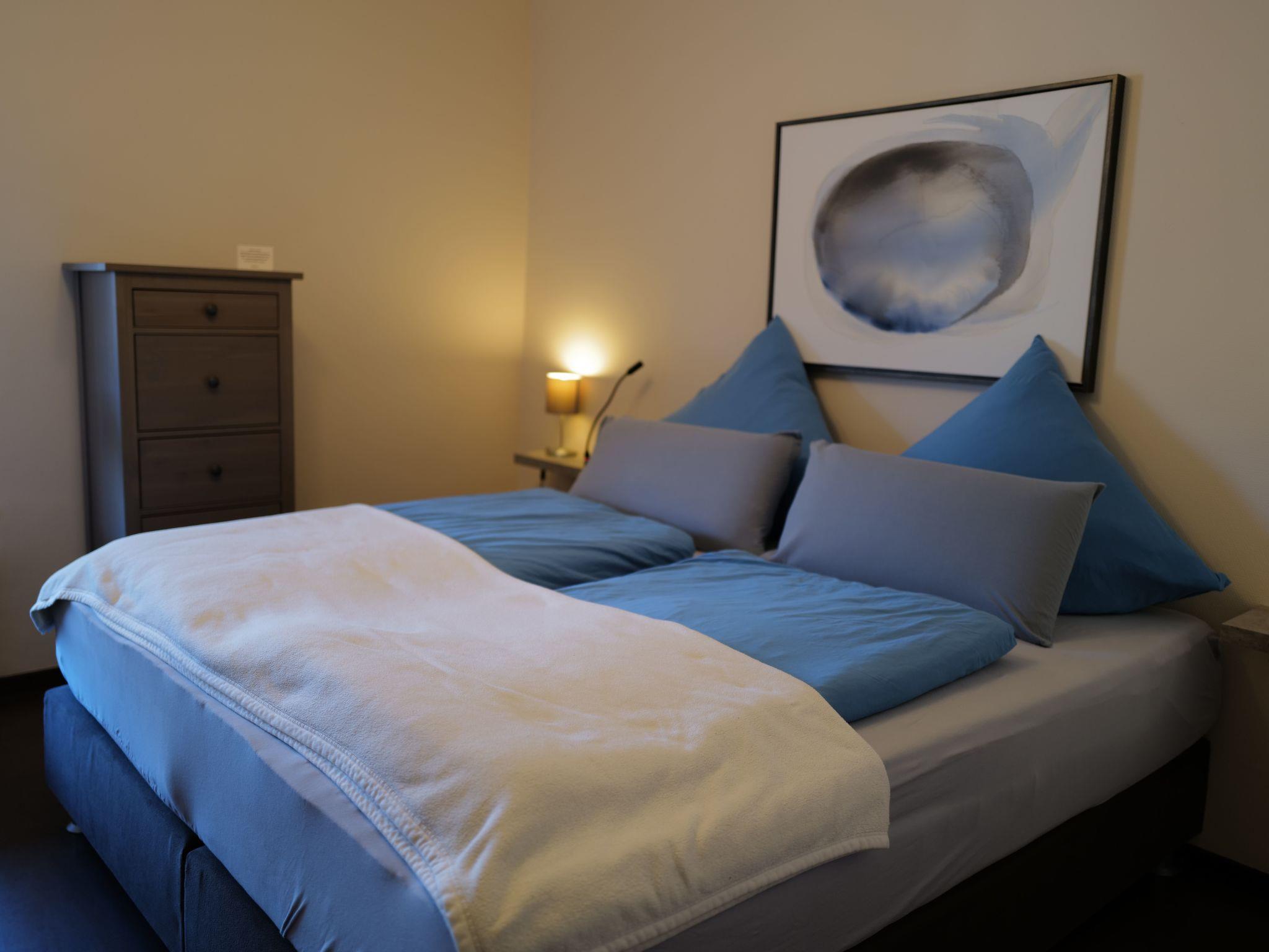 The 55m² holiday apartment for up to four people has a terrace and a roofed balcony. The generously equipped kitchen includes a dishwasher, a stove with a ceramic hob and an oven, a fridge with a freezer compartment and a Senseo coffee machine. Right next to it there is a living room with a high-quality sofa bed, a flatscreen TV with a digital HD receiver and a stereo system. There is a double bedroom with luxurious box spring beds (180 x 200cm). The bathroom has a shower.