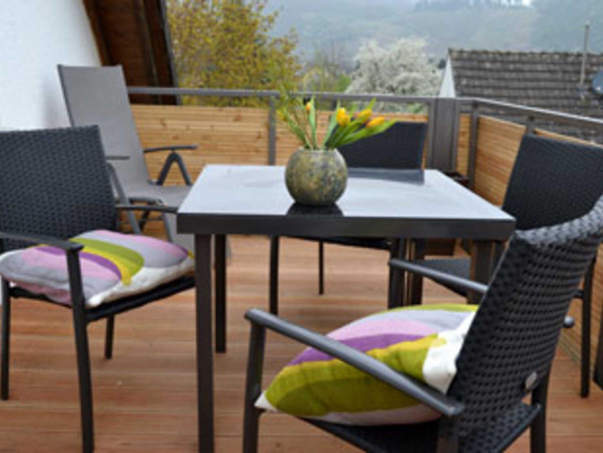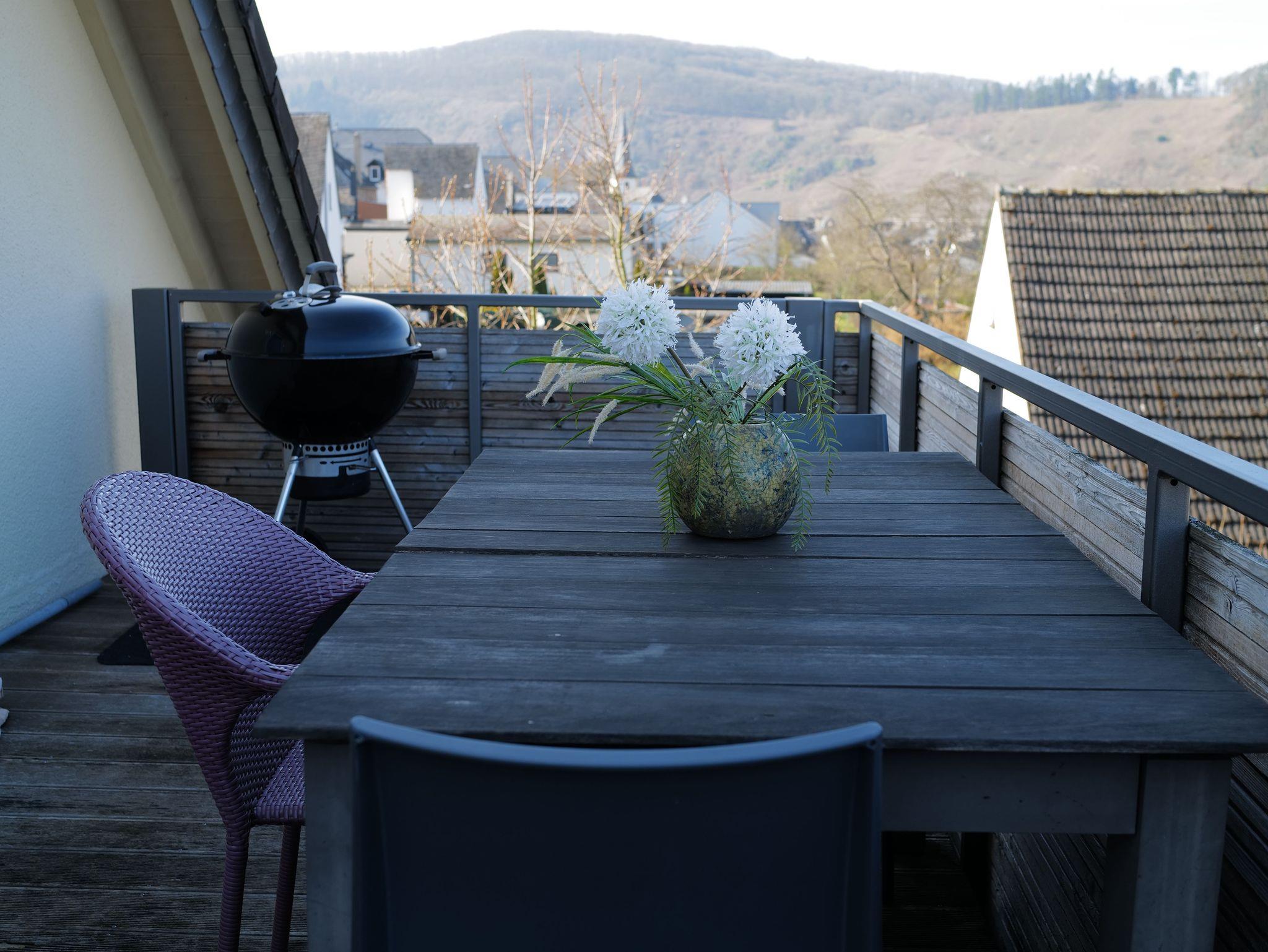 Die Ferienwohnung (60 qm, 2 bis 4 Personen) bietet mit ihrem Balkon traumhafte Aussicht auf die Mosel. Die komfortabel ausgestattete Küche (mit Geschirrspüler, Herd mit Cerankochfeld und Backofen, Kühlschrank mit Tiefkühlfach, Senseo-Maschine) ist zum Wohnzimmer (mit hochwertiger Schlafcouch, Flatscreen mit digitalem HD-Receiver und Stereoanlage) hin offen. Außerdem gibt es ein Doppelschlafzimmer (mit luxuriösen Boxspringbetten) und ein Bad mit Dusche.