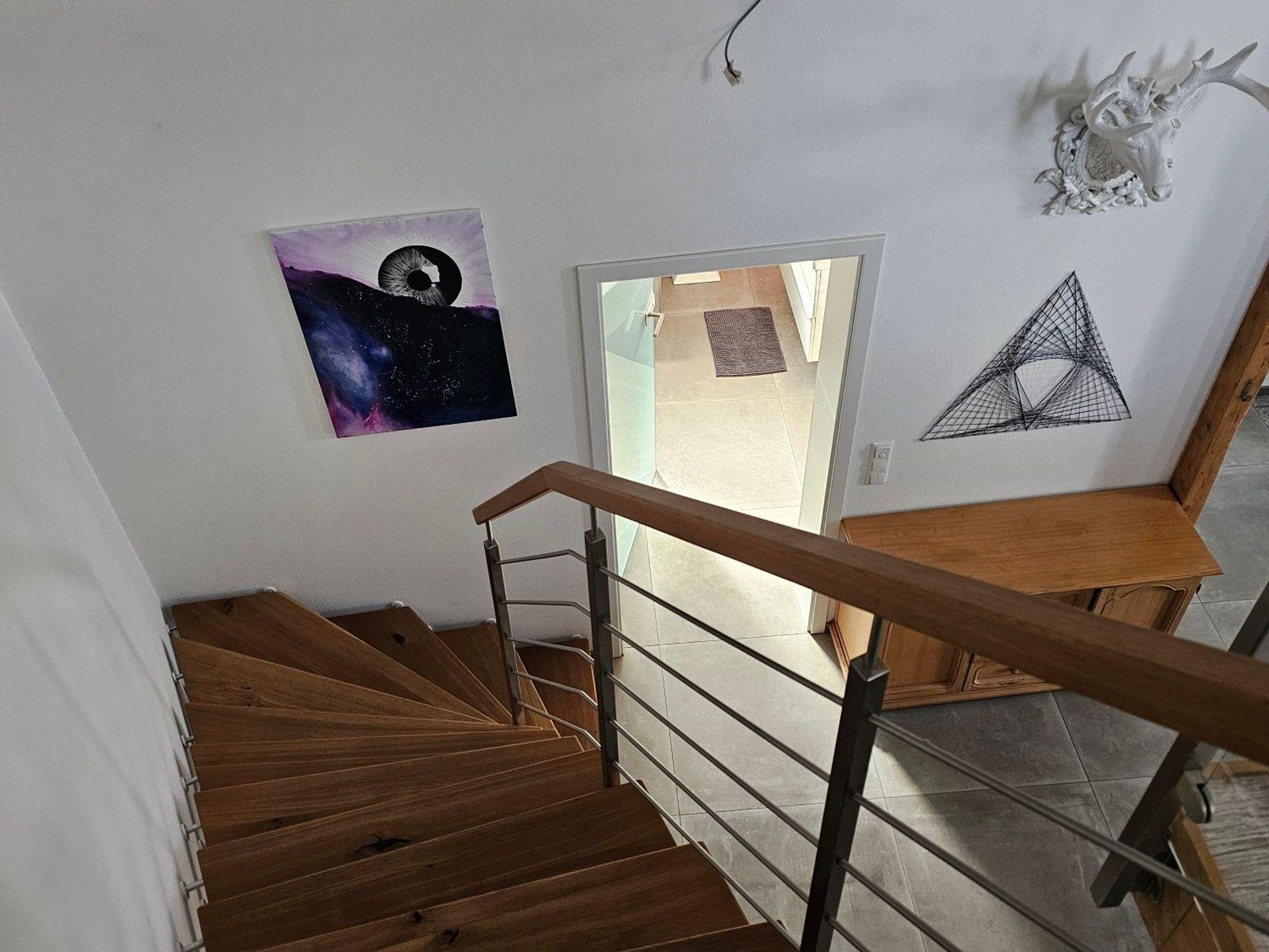Das Schlafzimmer ist etwas ganz Besonderes: das ehemalige Heulager wurde zur gemütlichen Empore ausgebaut, auf der heute ein komfortables Doppelbett steht - ideal für Pärchen oder Alleinreisende. Die offene Bauweise mit den alten Balken verleiht dem Haus eine urige und charmante Atmosphäre.