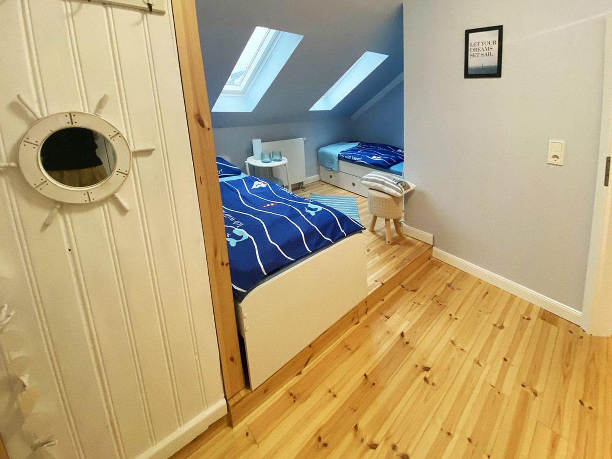 OG: ein weiteres Bad mit Dusche/WC. Drei Schlafzimmer (Ein Bett 1,80 x 2,00 m, ein Bett 1,60 x 2,00 m und zwei Einzelbetten 0,90 x 2,00 m mit TV).
