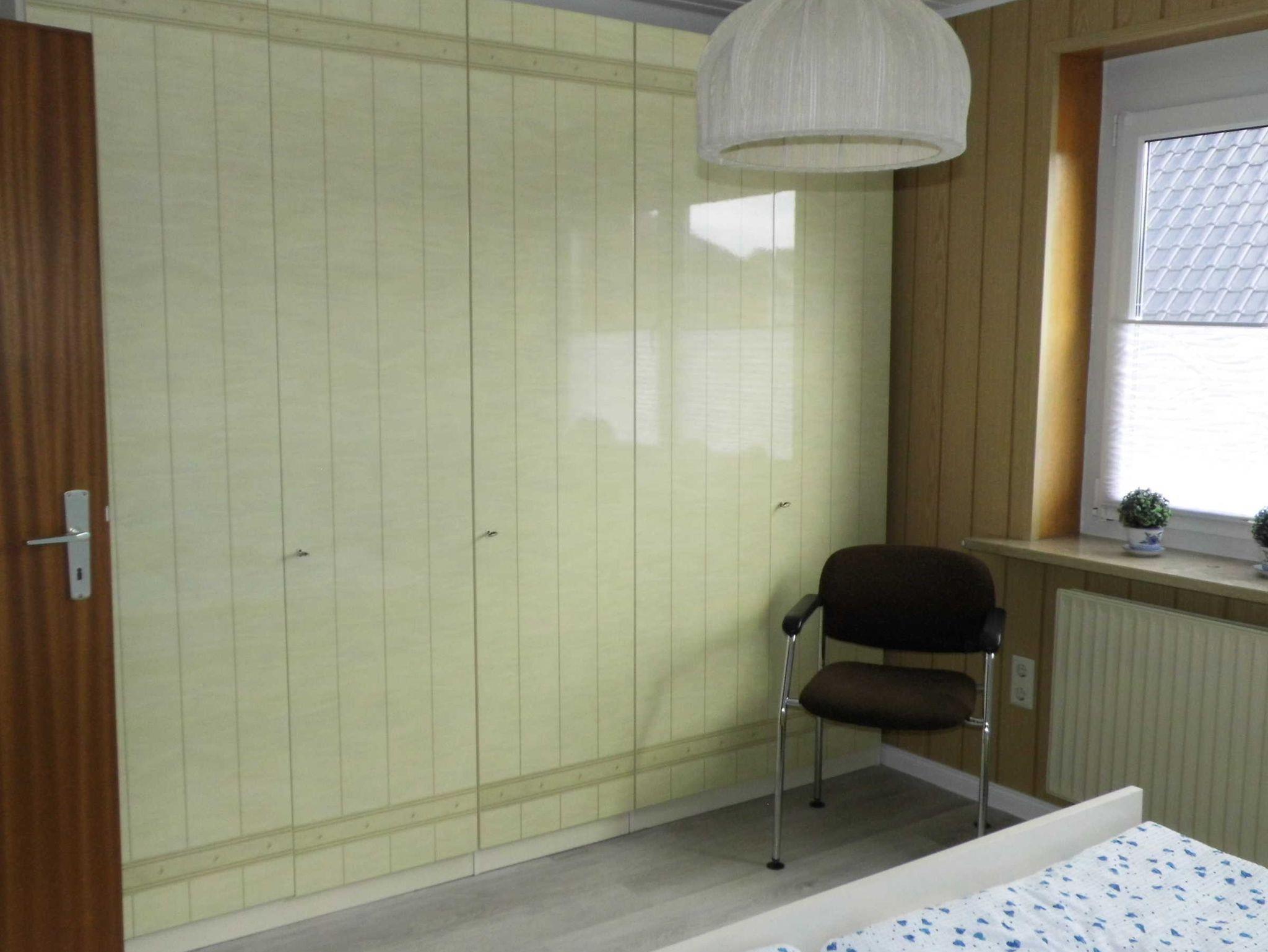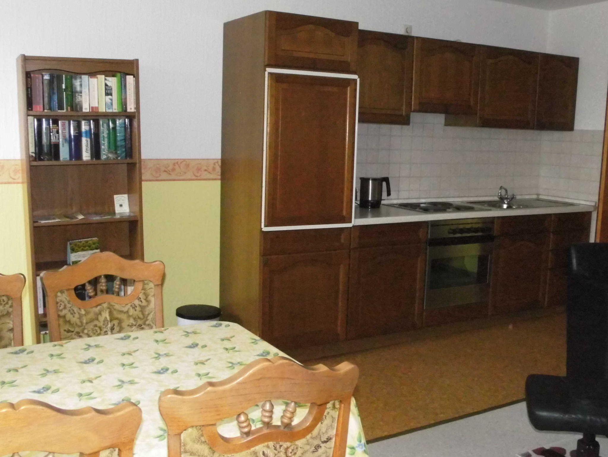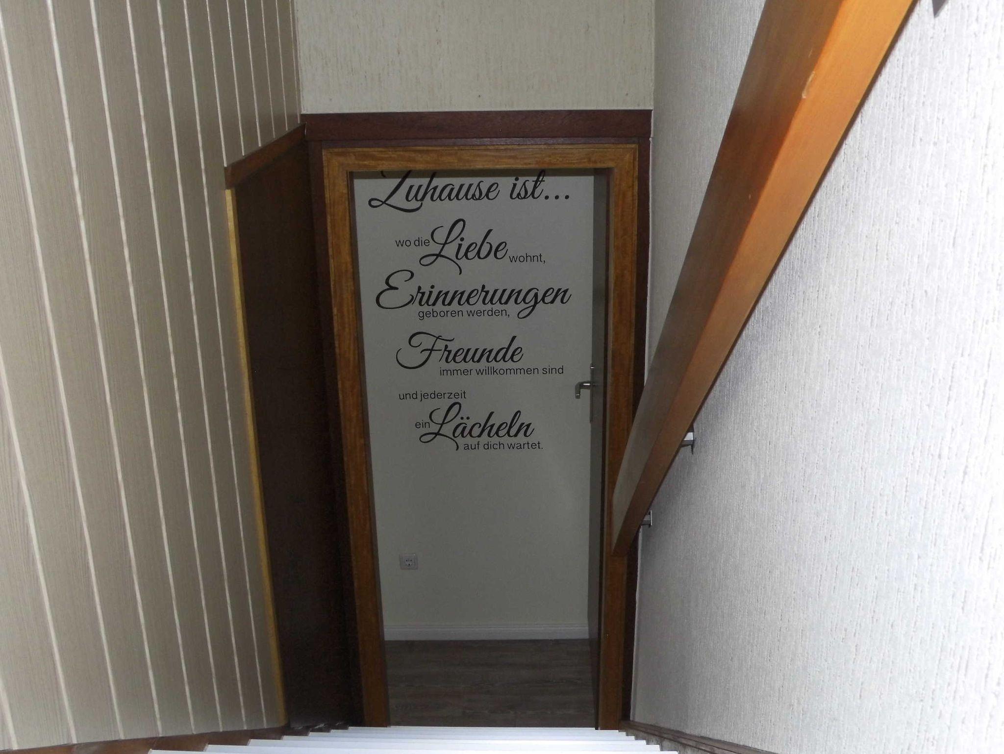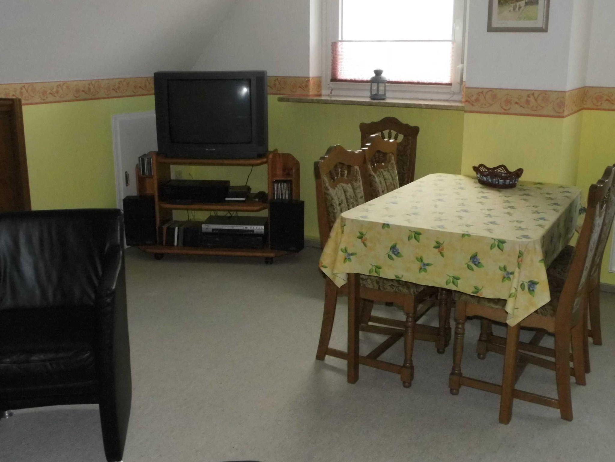 Voll eingerichtete Ferienwohnung im Obergeschoss. Das Haus liegt an einer kinderfreundlichen Nebenstraße.Im Dorf ist alles leicht zu Fuß und mit Fahrrad zu erreichen.Es gibt hinter dem Haus einen Garten mit überdachter Terrasse deren Nutzung zum Grillen und Sonne- tanken möglich ist. Dieser Bereich wird mit dem Eigentümer gemeinsam genutzt. Der Eingang geht durch den unteren Flur zu der Treppe. Der Eigentümer wohnt im Erdgeschoss. WLAN ist vorhanden.