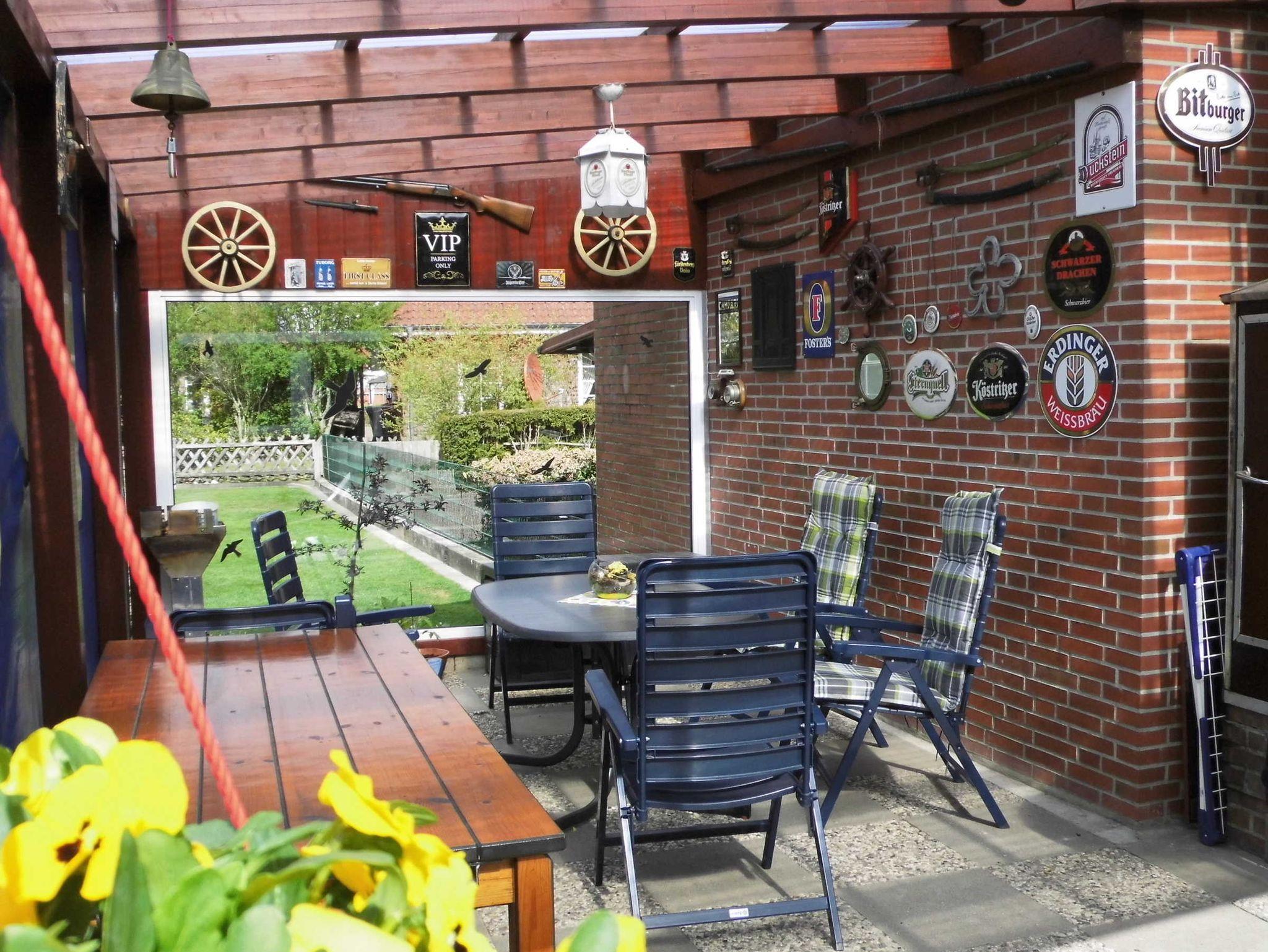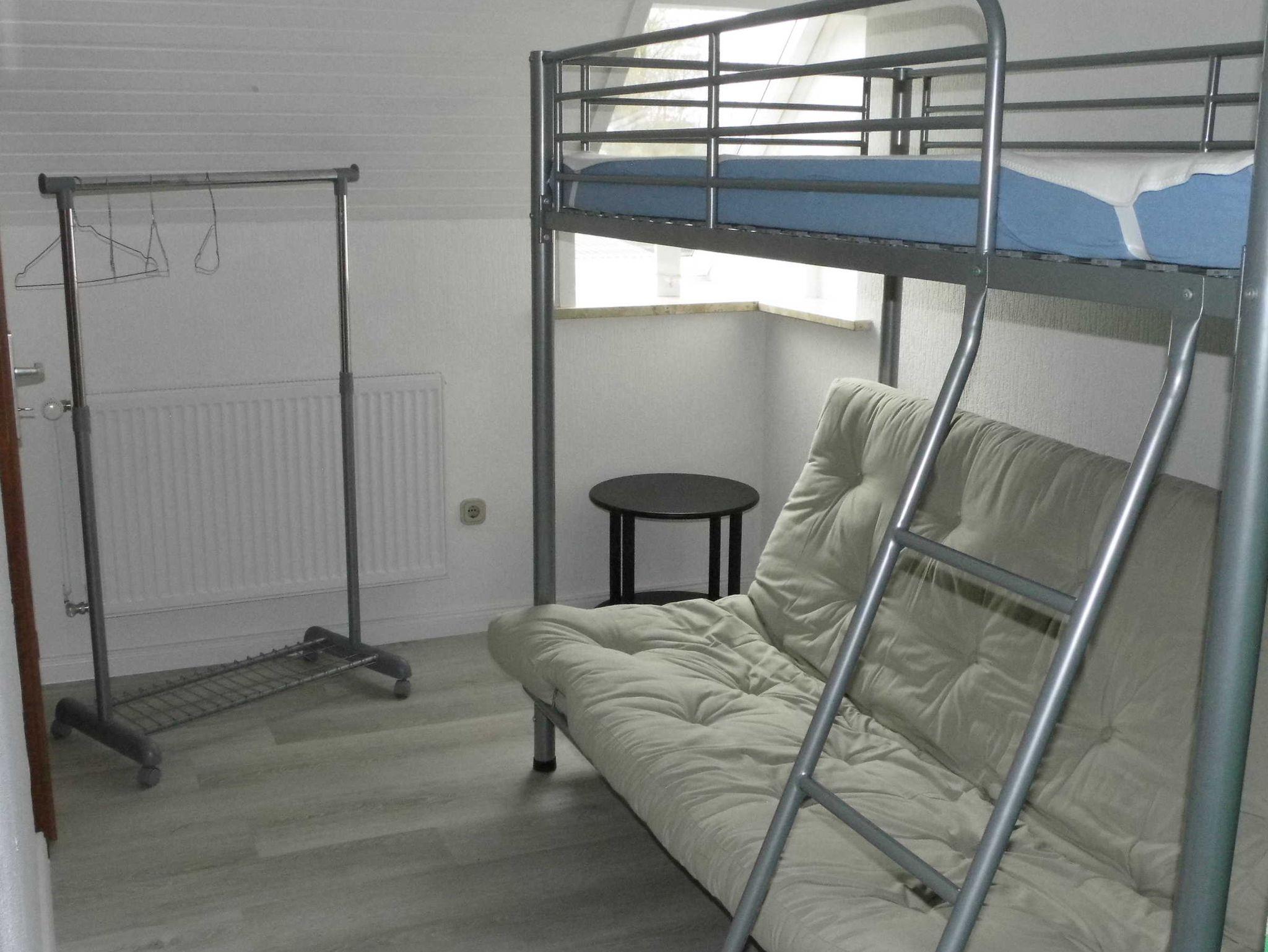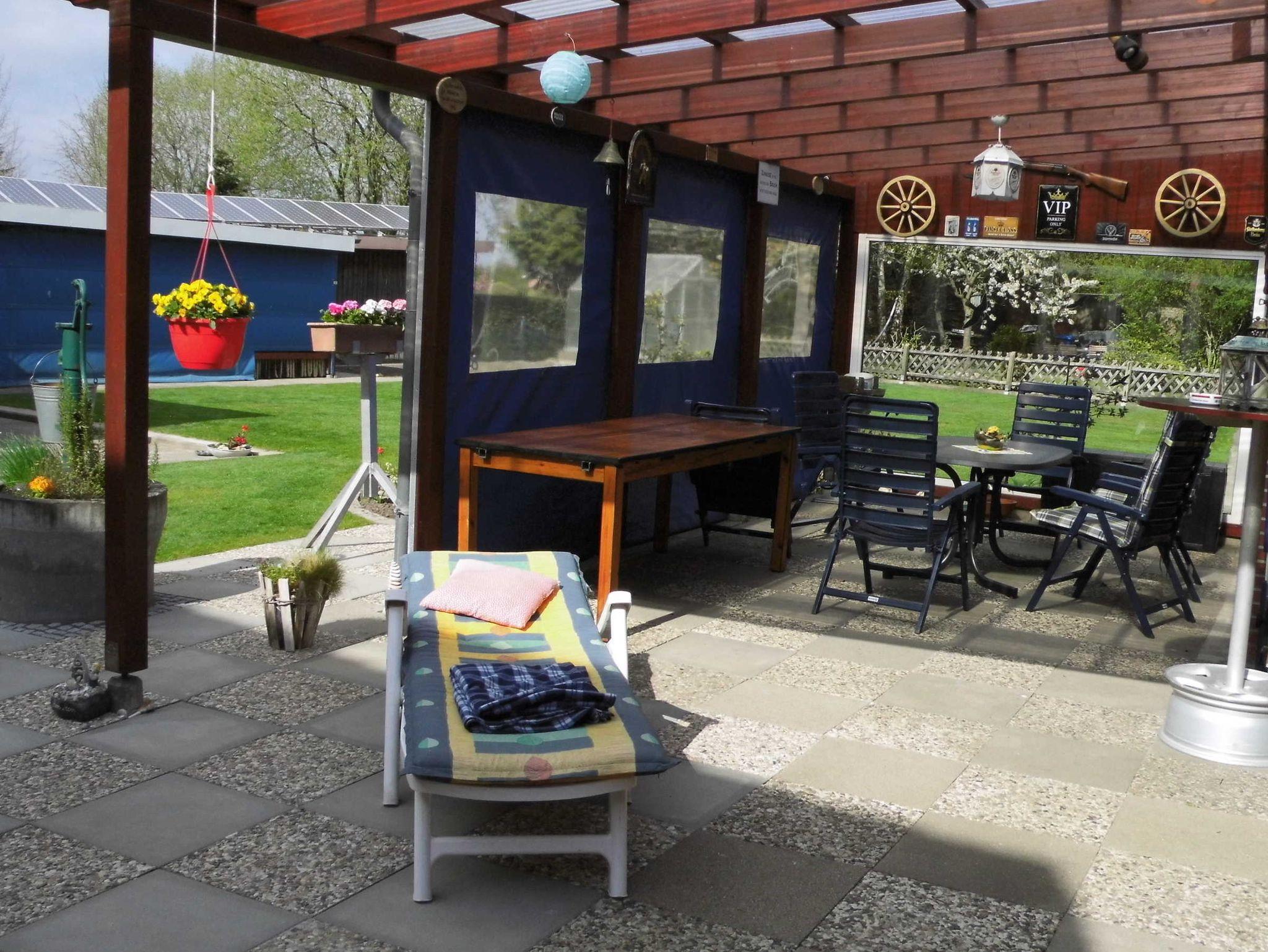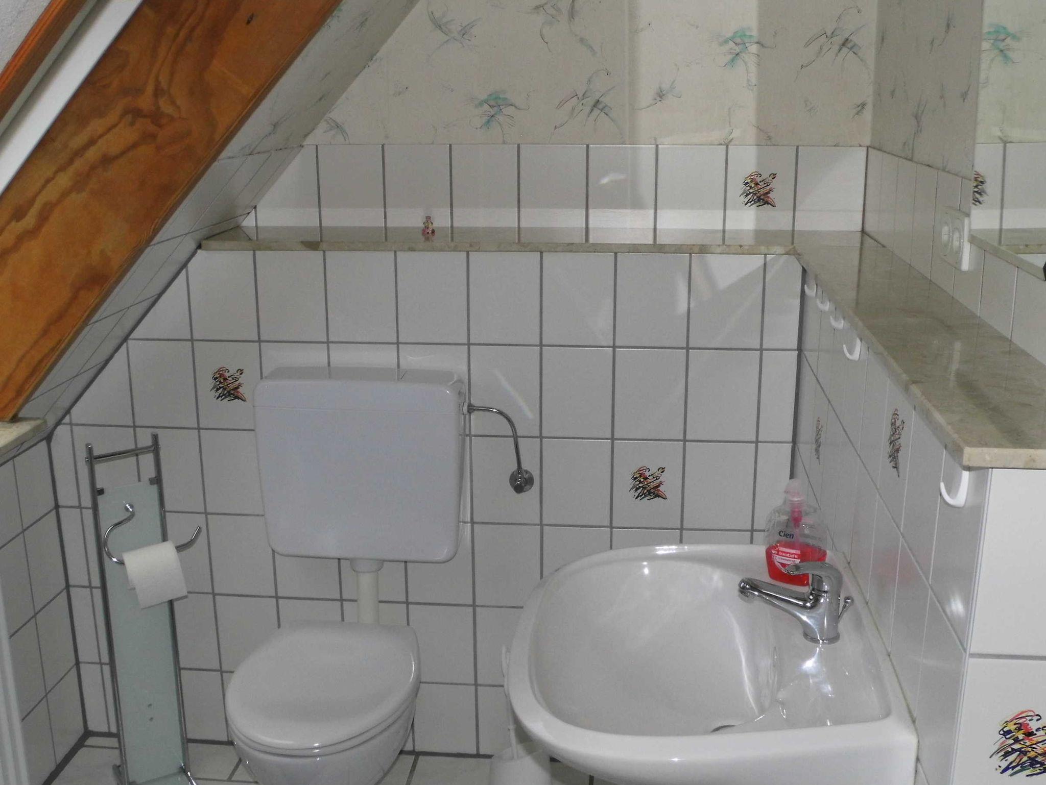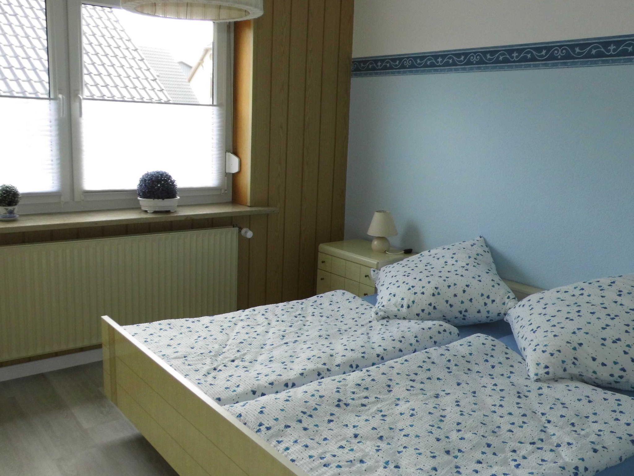 Voll eingerichtete Ferienwohnung im Obergeschoss. Das Haus liegt an einer kinderfreundlichen Nebenstraße.Im Dorf ist alles leicht zu Fuß und mit Fahrrad zu erreichen.Es gibt hinter dem Haus einen Garten mit überdachter Terrasse deren Nutzung zum Grillen und Sonne- tanken möglich ist. Dieser Bereich wird mit dem Eigentümer gemeinsam genutzt. Der Eingang geht durch den unteren Flur zu der Treppe. Der Eigentümer wohnt im Erdgeschoss. WLAN ist vorhanden.