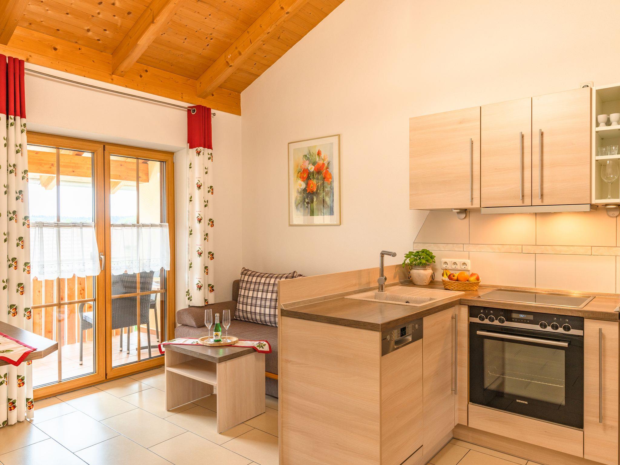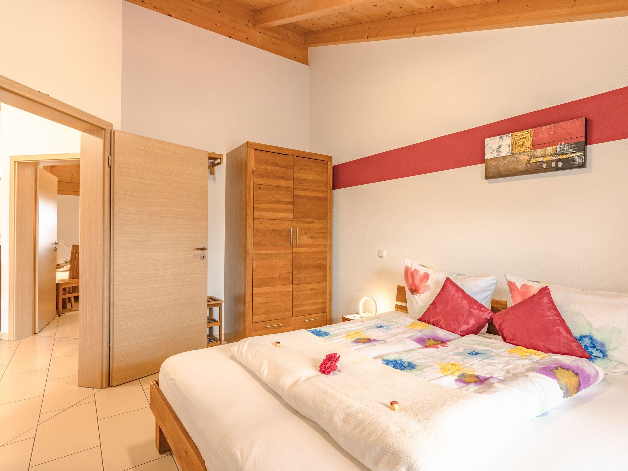 Die gemütliche ca. 50 m² große Ferienwohnung Obstgarten bietet genügend Platz für bis zu 4 Personen. Die Wohnung verfügt über zwei getrennte Schlafzimmer sowie einen eigenen Balkon. Die hochwertig und modern eingerichtete Wohnung befindet sich im Gästehaus unseres Dreiseithofes.