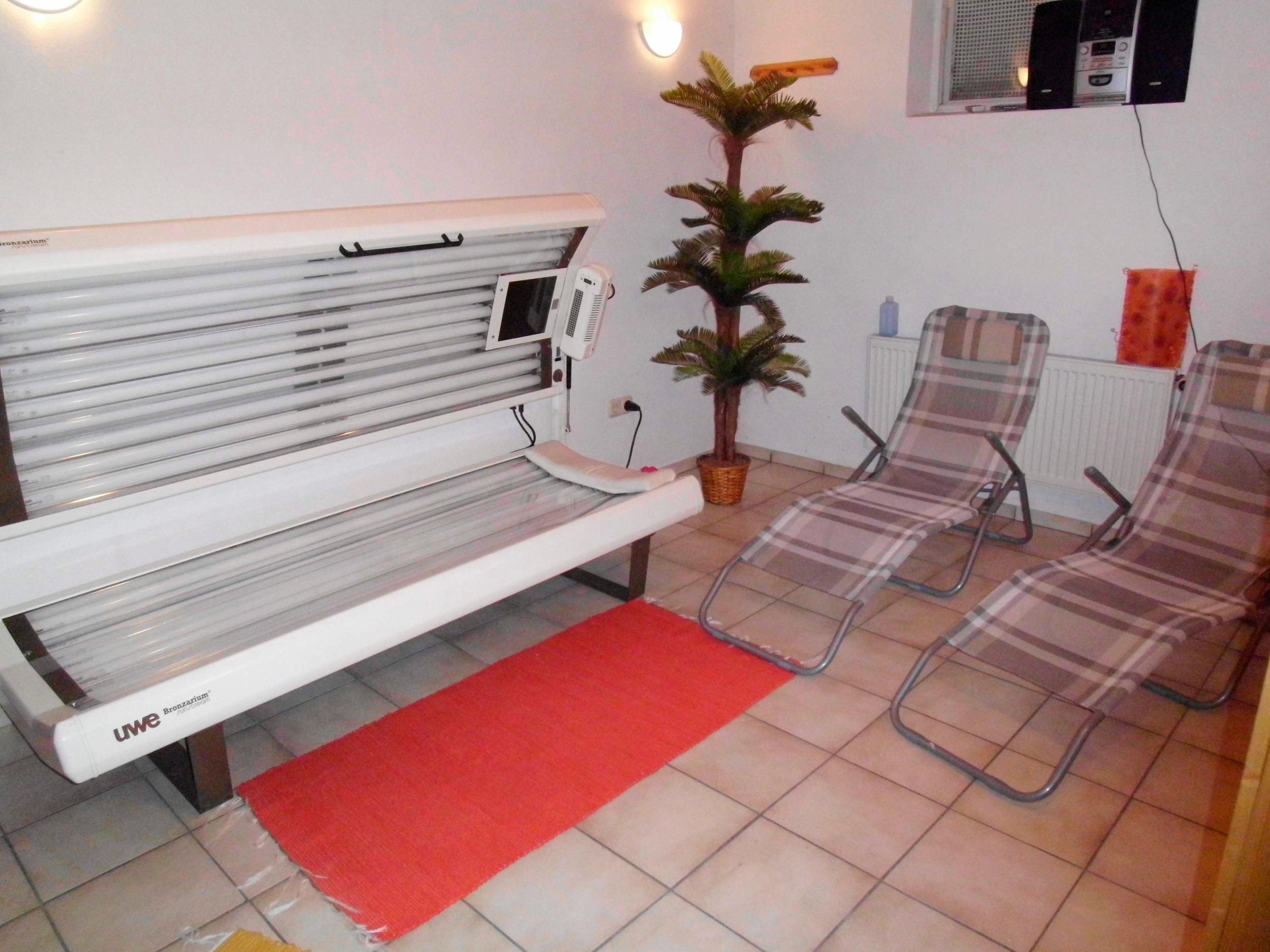 Die Küche ist komplett eingerichtet mit allem, was Sie benötigen. Ferner verfügt unsere Ferienwohnung über einen Fitnessraum mit mehreren Geräten. Im Haupthaus befindet sich eine Sauna und ein Solarium das Ihnen zur Verfügung steht.