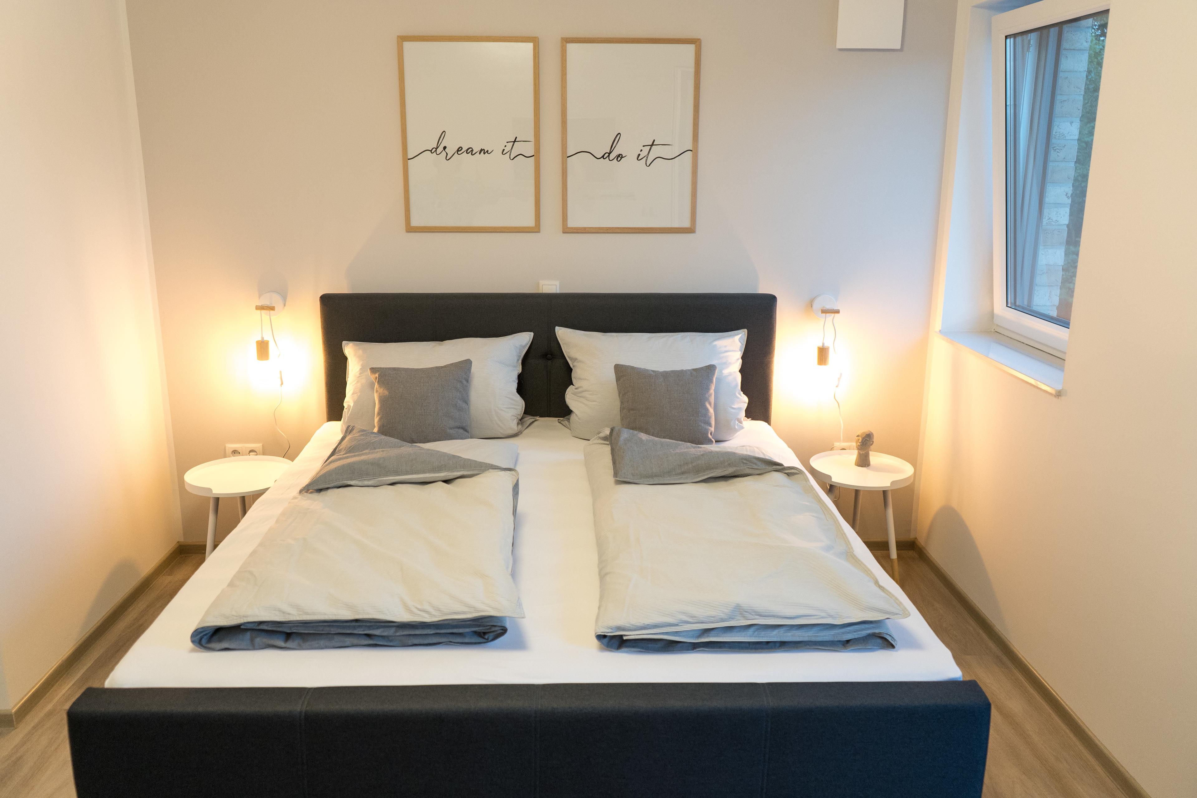 Jedes der 3Häuser wurde mit Liebe zum Detail und auf hohem Niveau ausgestattet. Hierzu zählen sowohl die gemütlichen Boxspringbetten in den zwei Schlafzimmern als auch die Smart-TVs, das kostenfreie WLAN und die erstklassig eingerichteten, offenen Wohnküchen. Die am Haus gelegenen Carports und Parkplätze mit direktem Zugang zur e-Ladestation runden unser Angebot für Sie ab.