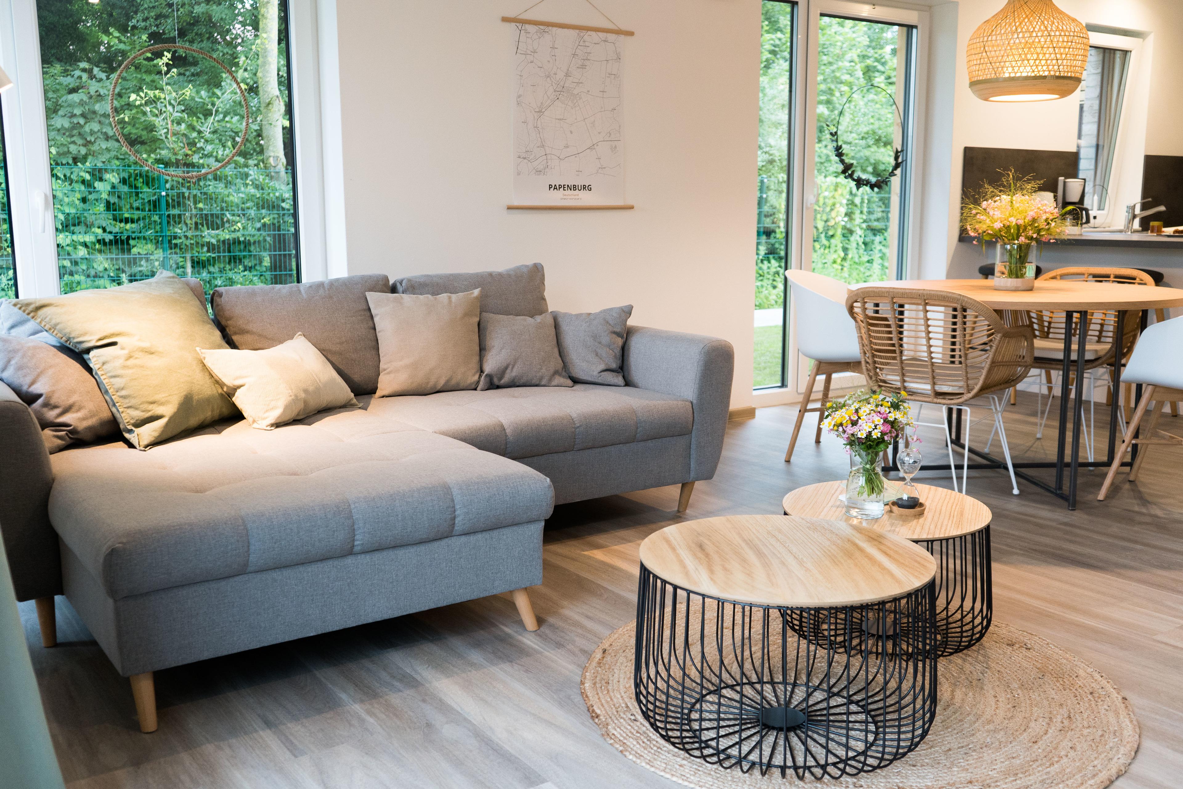 Jedes der 3Häuser wurde mit Liebe zum Detail und auf hohem Niveau ausgestattet. Hierzu zählen sowohl die gemütlichen Boxspringbetten in den zwei Schlafzimmern als auch die Smart-TVs, das kostenfreie WLAN und die erstklassig eingerichteten, offenen Wohnküchen. Die am Haus gelegenen Carports und Parkplätze mit direktem Zugang zur e-Ladestation runden unser Angebot für Sie ab.