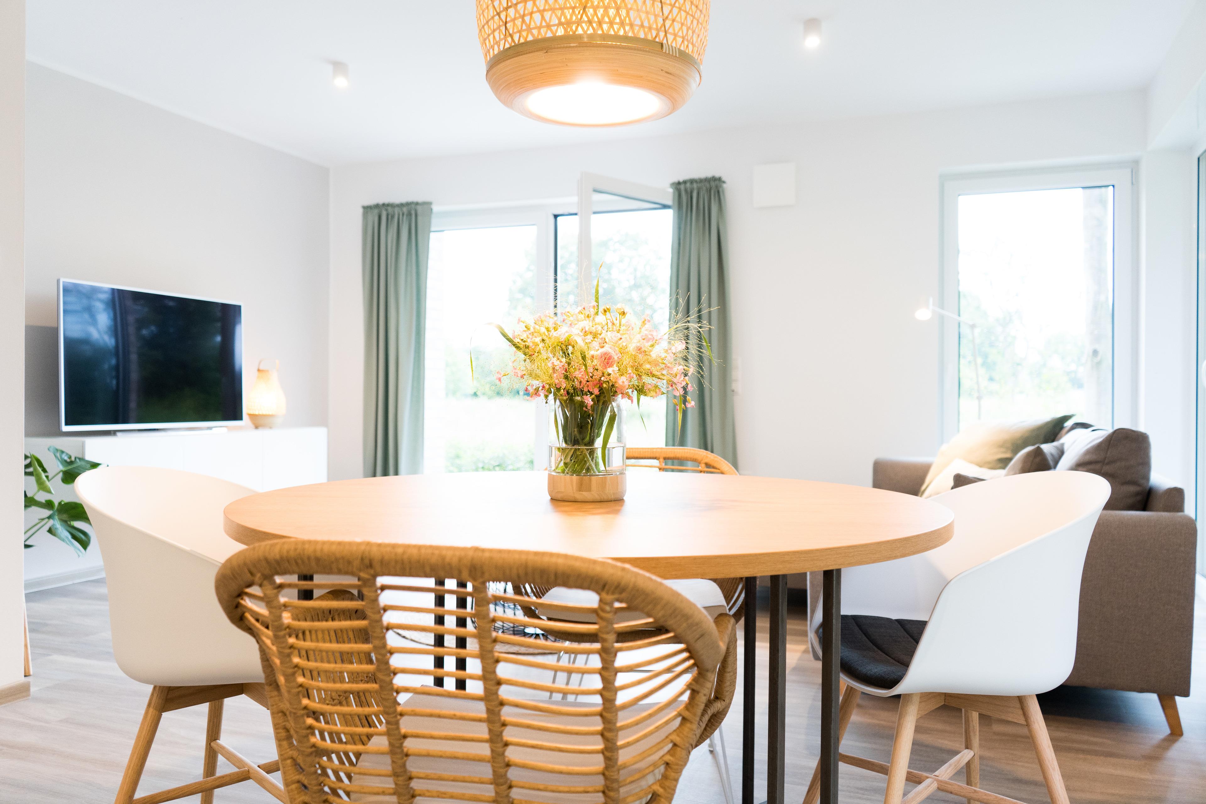 Jedes der 3Häuser wurde mit Liebe zum Detail und auf hohem Niveau ausgestattet. Hierzu zählen sowohl die gemütlichen Boxspringbetten in den zwei Schlafzimmern als auch die Smart-TVs, das kostenfreie WLAN und die erstklassig eingerichteten, offenen Wohnküchen. Die am Haus gelegenen Carports und Parkplätze mit direktem Zugang zur e-Ladestation runden unser Angebot für Sie ab.