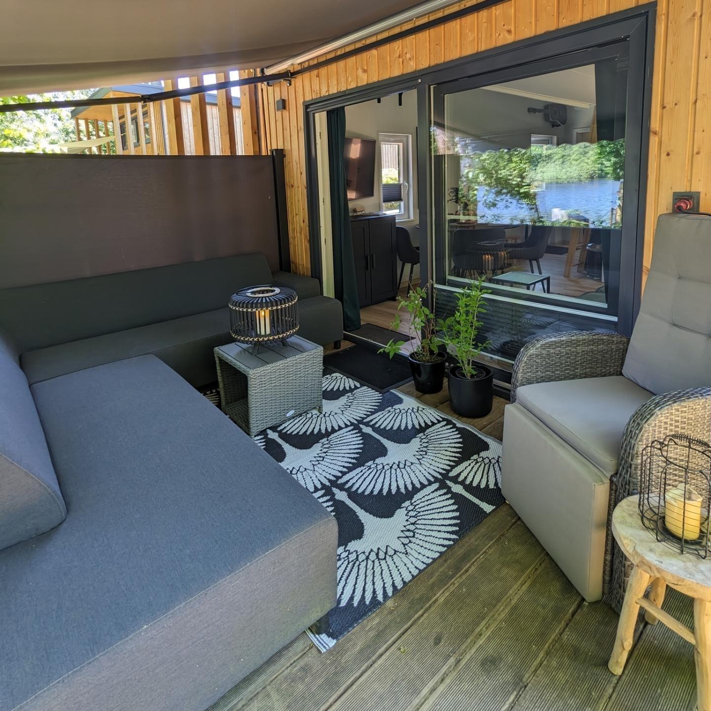 Genießen Sie Ihren Urlaub auf Ihrer Terrasse mit großer Gartenlounge geschützt durch Markisen