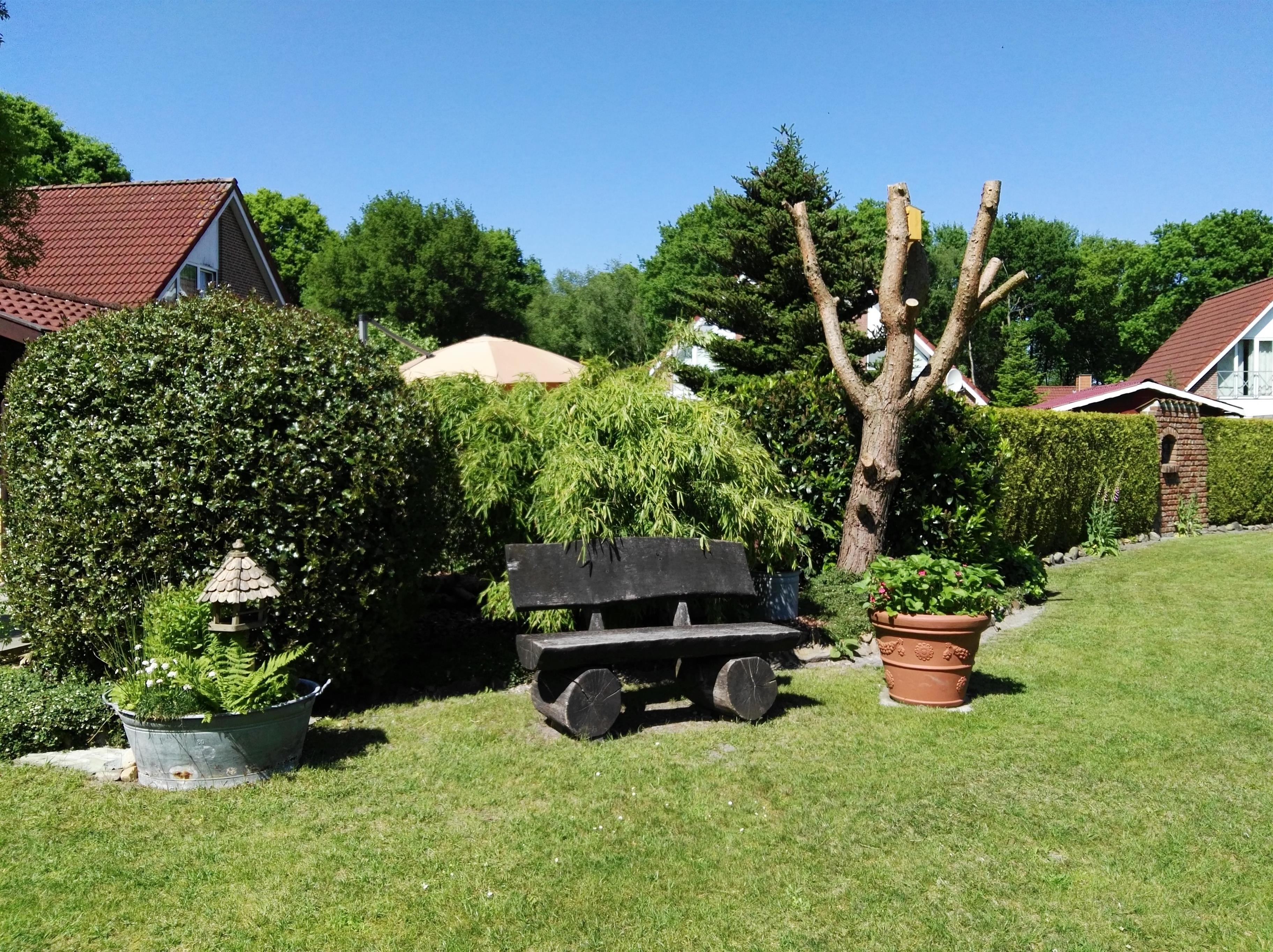 Im Garten vergessen Sie schnell den Alltag. Das große Grundstück ist Bestandteil eines Ferienparks und grenzt unmittelbar an ein Naturschutzgebiet.