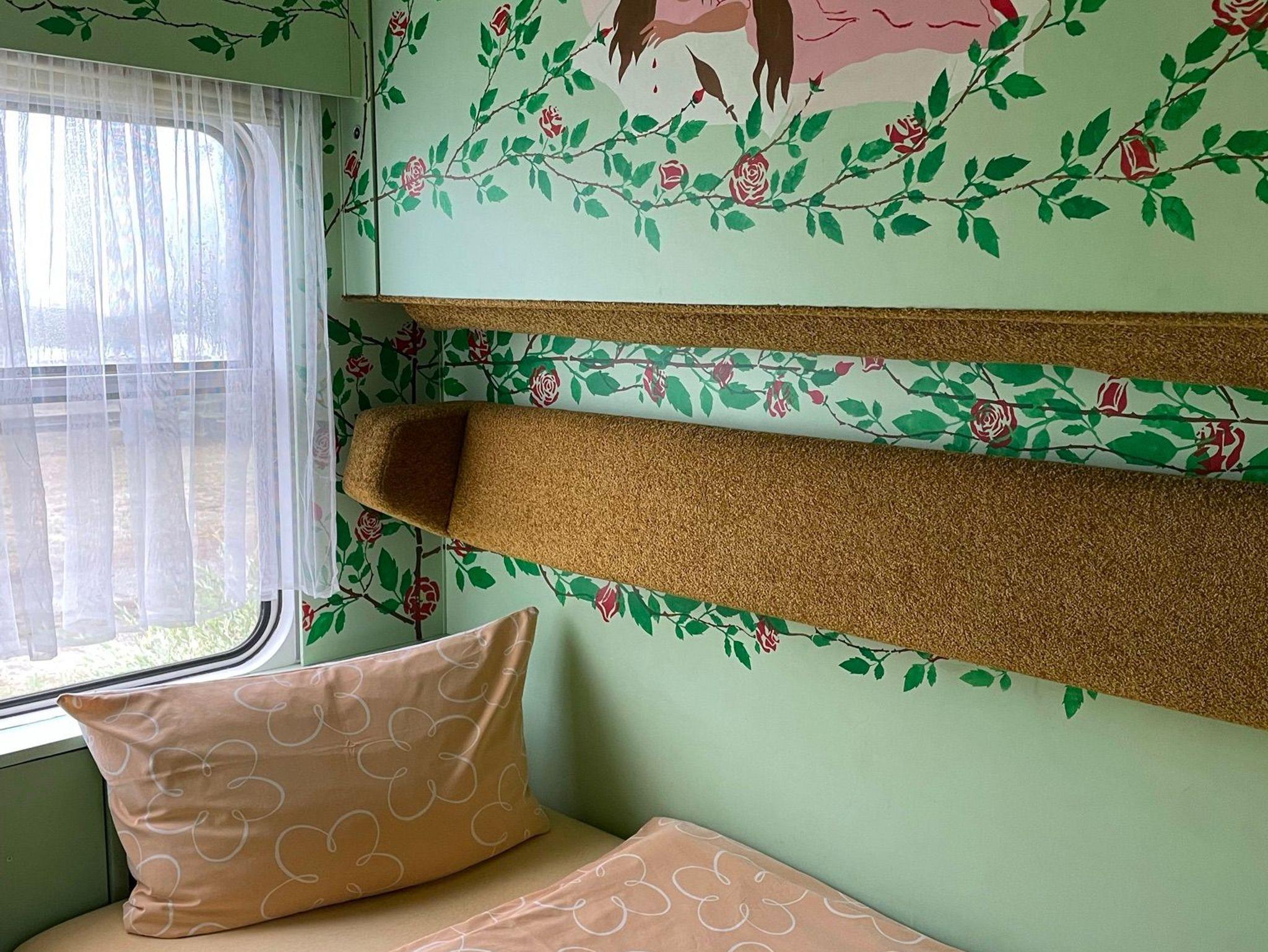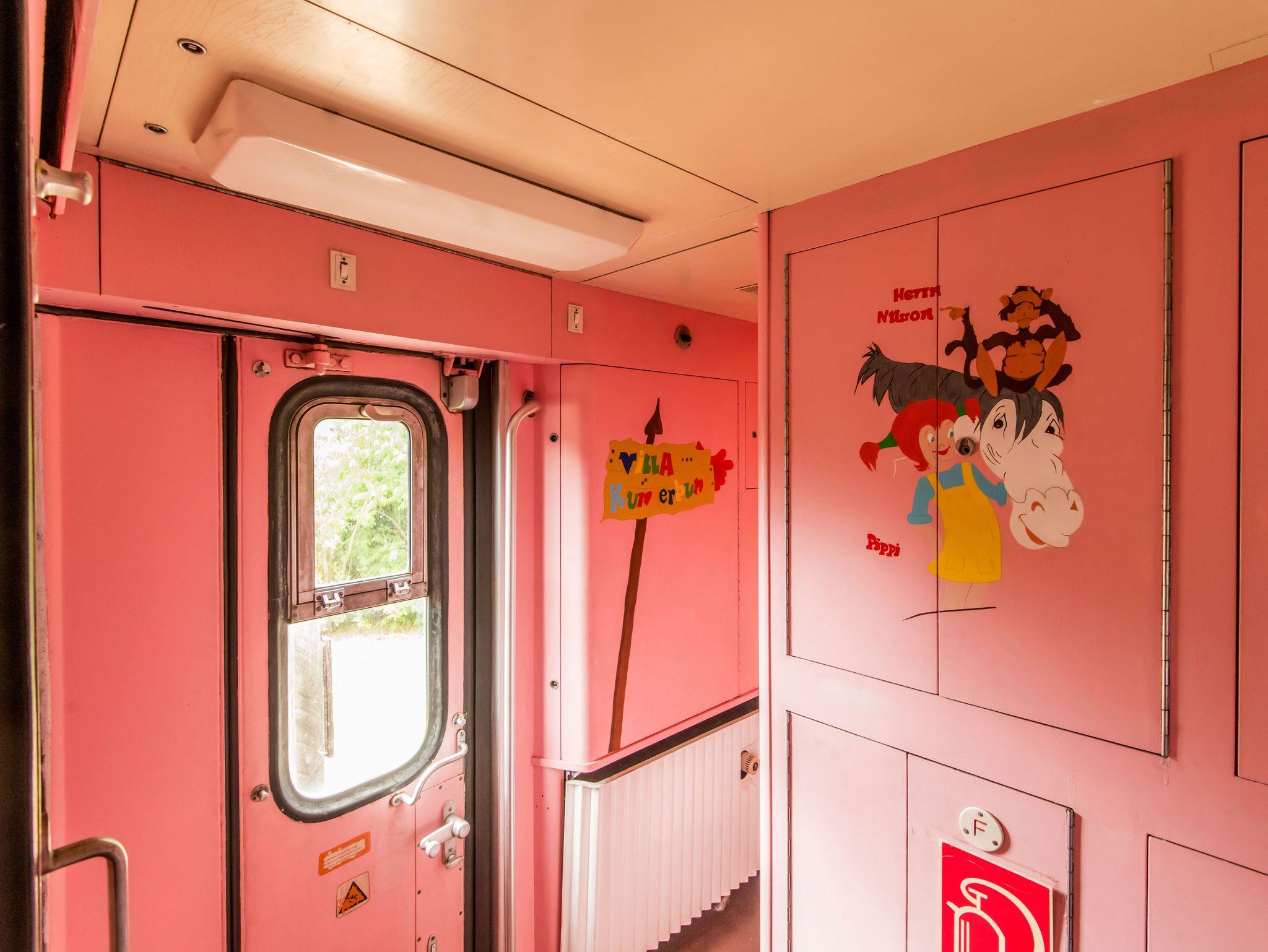 Der Schlafwagon ist ein Kunstwerk, bemalt mit den Fantasien von Pippi Langstrumpf und nordischen Märchensagen.