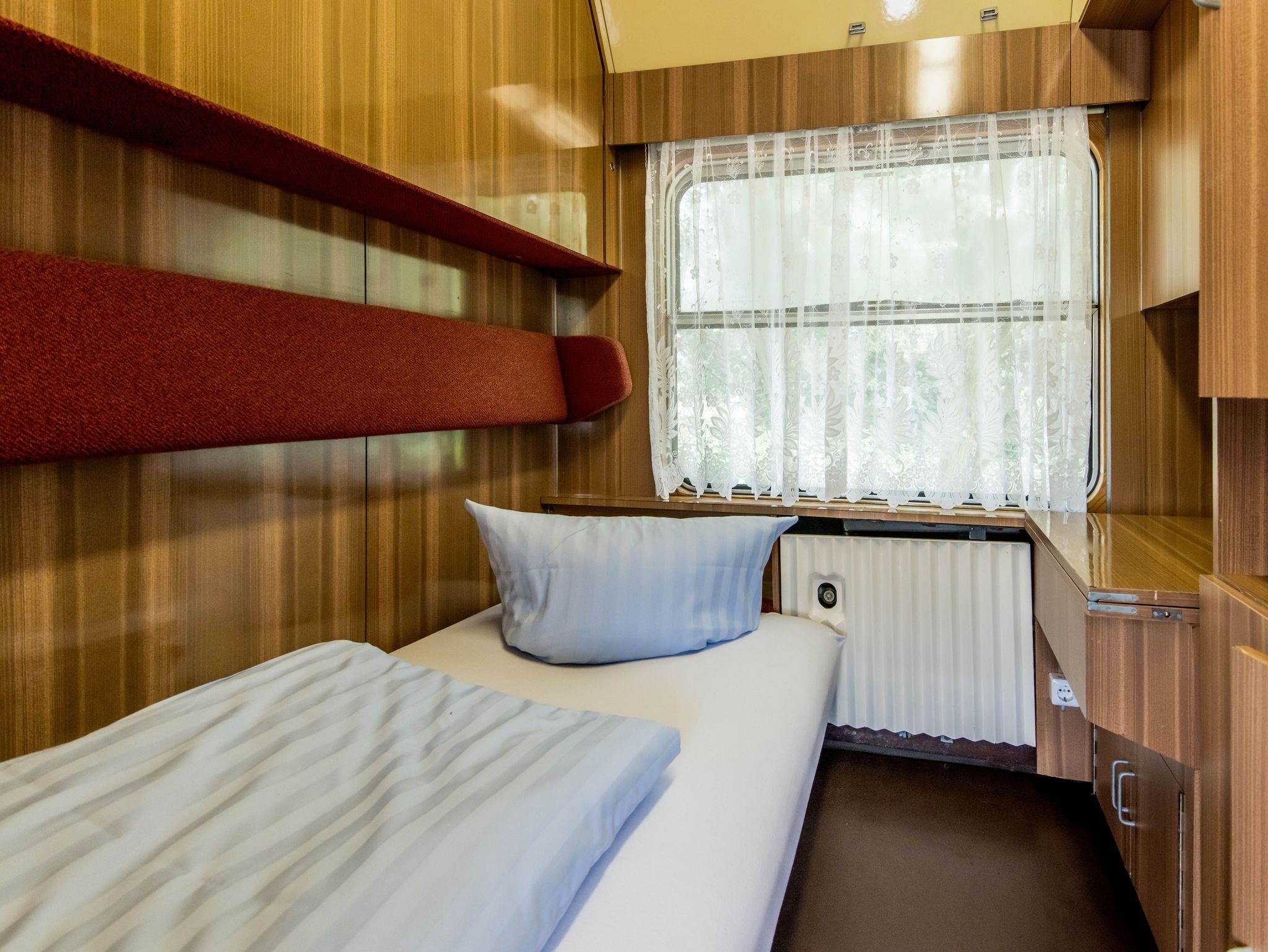 Sie übernachten in Schlafabteilen eines Eisenbahnwagons. Die einzelnen Abteile sind im Schlafwagon als Einzel- oder Doppelkabine buchbar. Die Schlafgelegenheit sind als Etagenbetten ausgelegt.
