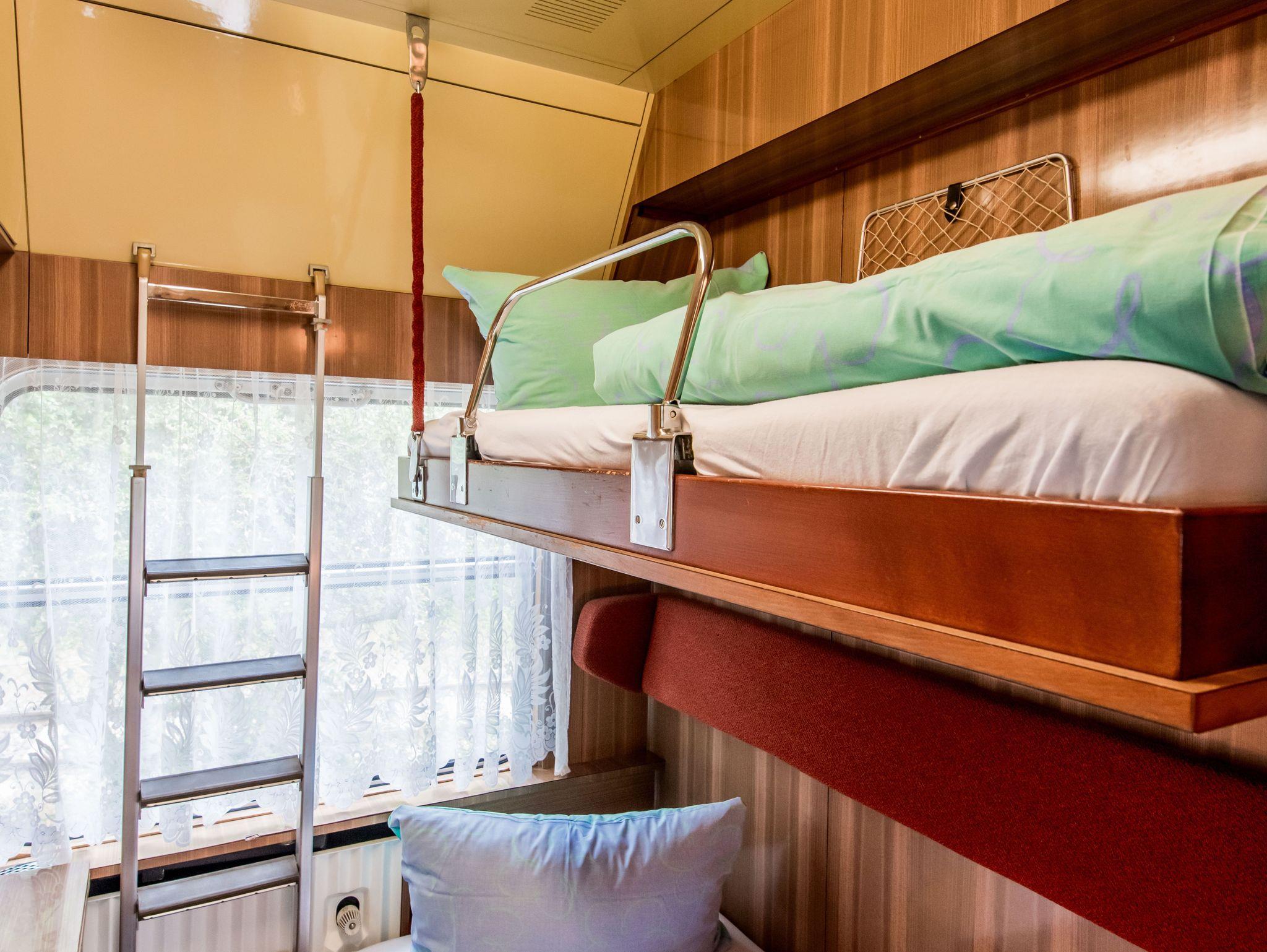 Sie übernachten in Schlafabteilen eines Eisenbahnwagons. Die einzelnen Abteile sind im Schlafwagon als Einzel- oder Doppelkabine buchbar. Die Schlafgelegenheit sind als Etagenbetten ausgelegt.