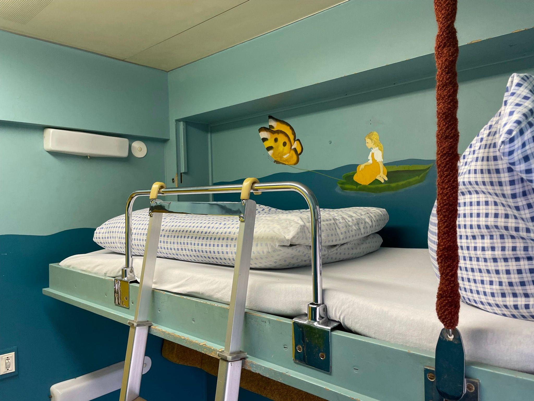 Der Schlafwagon ist ein Kunstwerk, bemalt mit den Fantasien von Pippi Langstrumpf und nordischen Märchensagen.