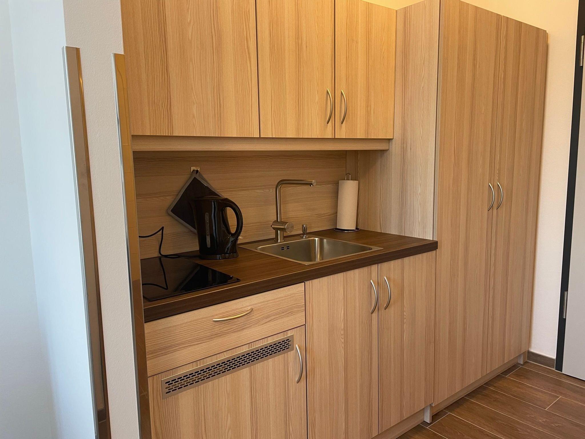 Jedes der Zimmer im Gästehaus ist in modernen Farbtönen gehalten und mit Flachbildfernsehern, kostenlosem WLAN und einem Arbeitstisch eingerichtet. Mit einem großen Doppelbett und einer Pantry-Küche sowie einem Badezimmer mit bodenebener Dusche ist das großzügige Studio ausgestattet. Aus den lichtdurchfluteten großen Fenstern hat man einen wunderschönen Blick ins grüne Ambiente der Natur.