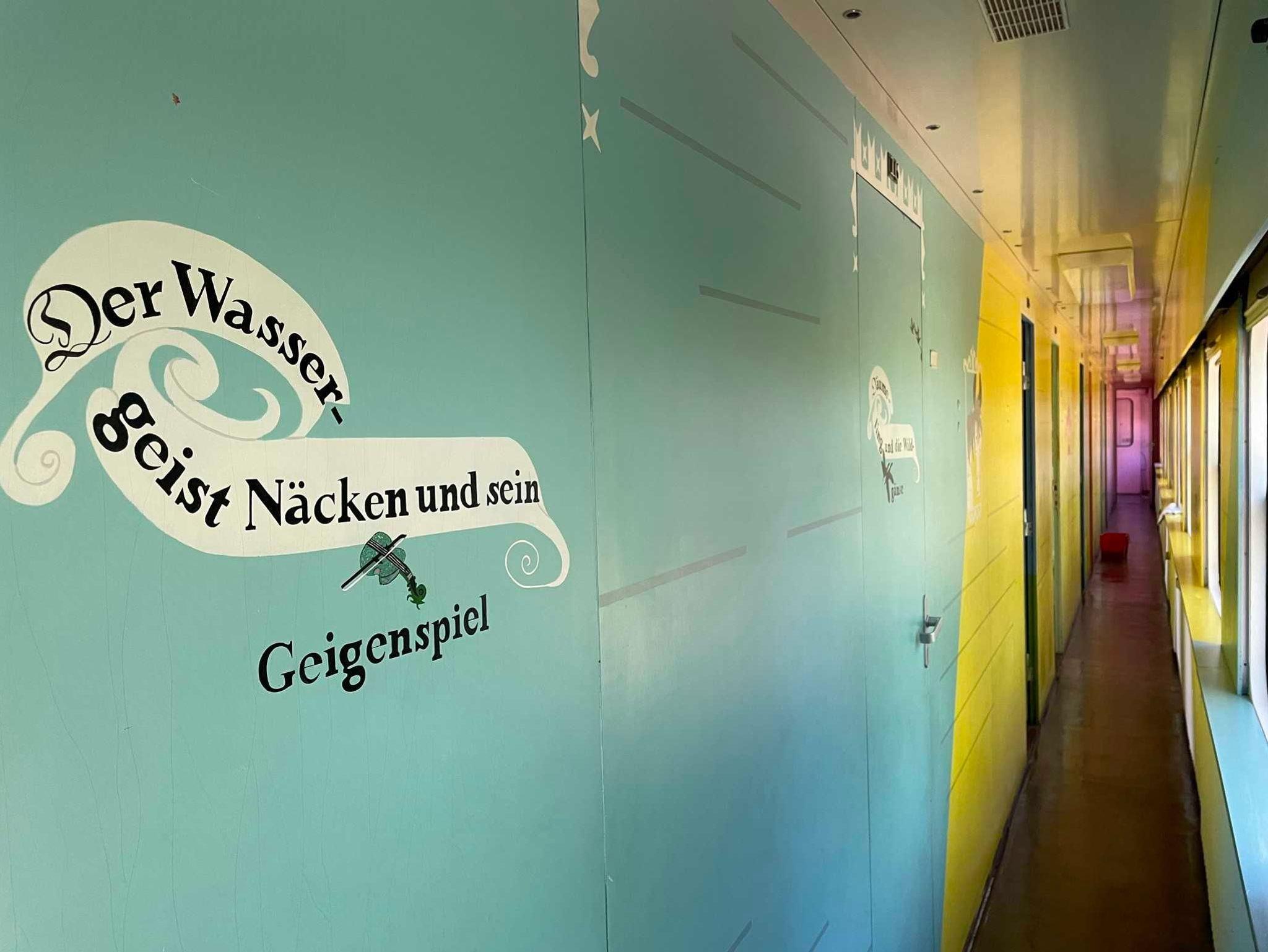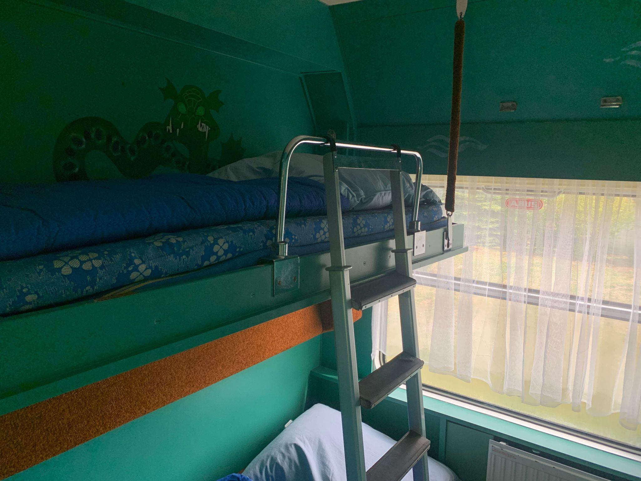 Der Schlafwagon ist ein Kunstwerk, bemalt mit den Fantasien von Pippi Langstrumpf und nordischen Märchensagen.