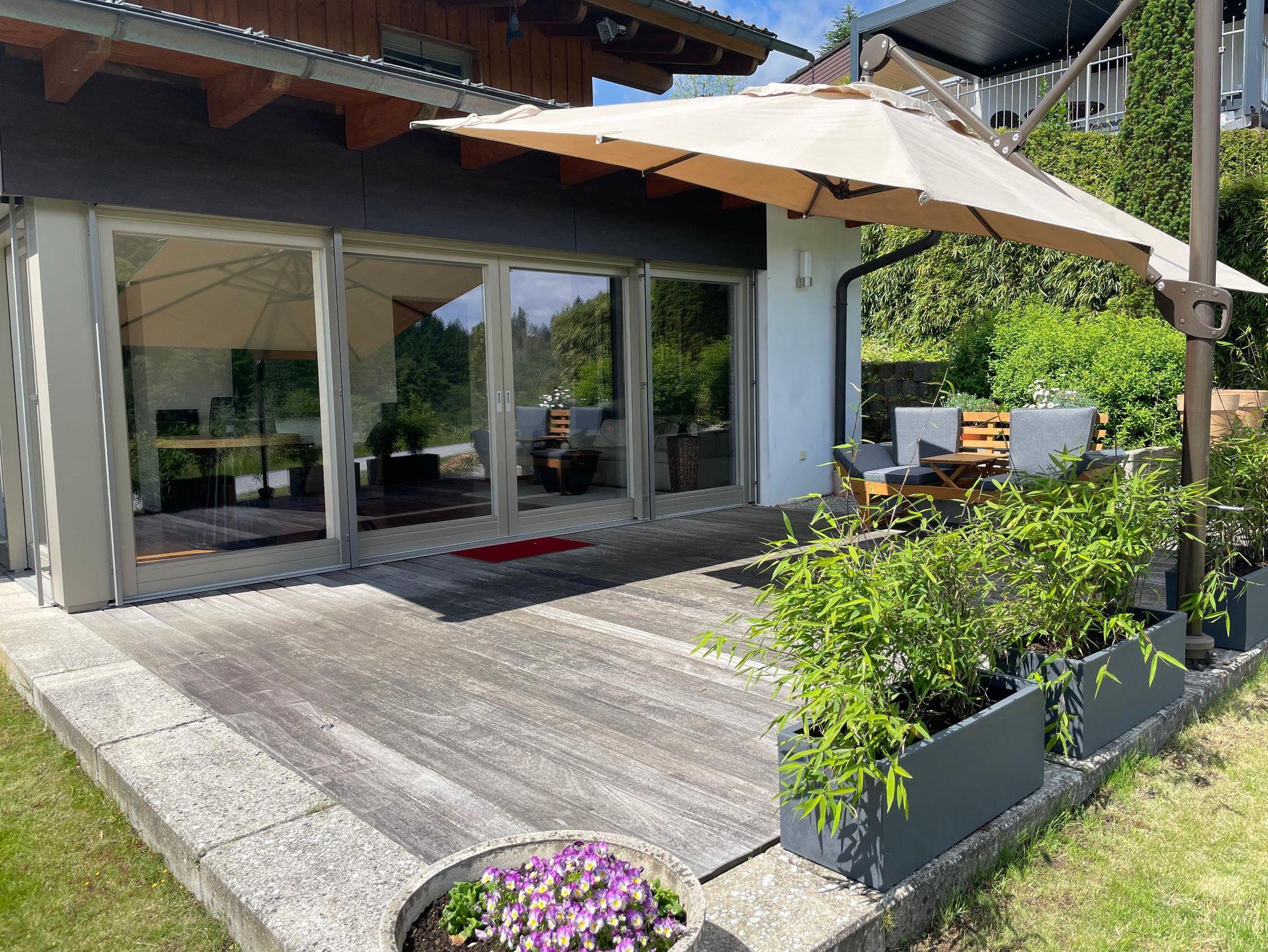 Willkommen in unserer modernen, hochwertig ausgestatteten 70?m² Ferienwohnung in traumhafter Lage mit Blick auf die Donau. Freuen Sie sich auf ein helles, offenes Wohnkonzept mit neuem Schlafzimmer, voll ausgestatteter Küche, Bad mit Dusche und gemütlichem Wohnzimmer. Entspannen Sie im Fitnessraum mit Infrarotkabine. Terrasse, WLAN, Wallbox für E-Autos und elektrische Außenjalousien runden das Angebot ab.