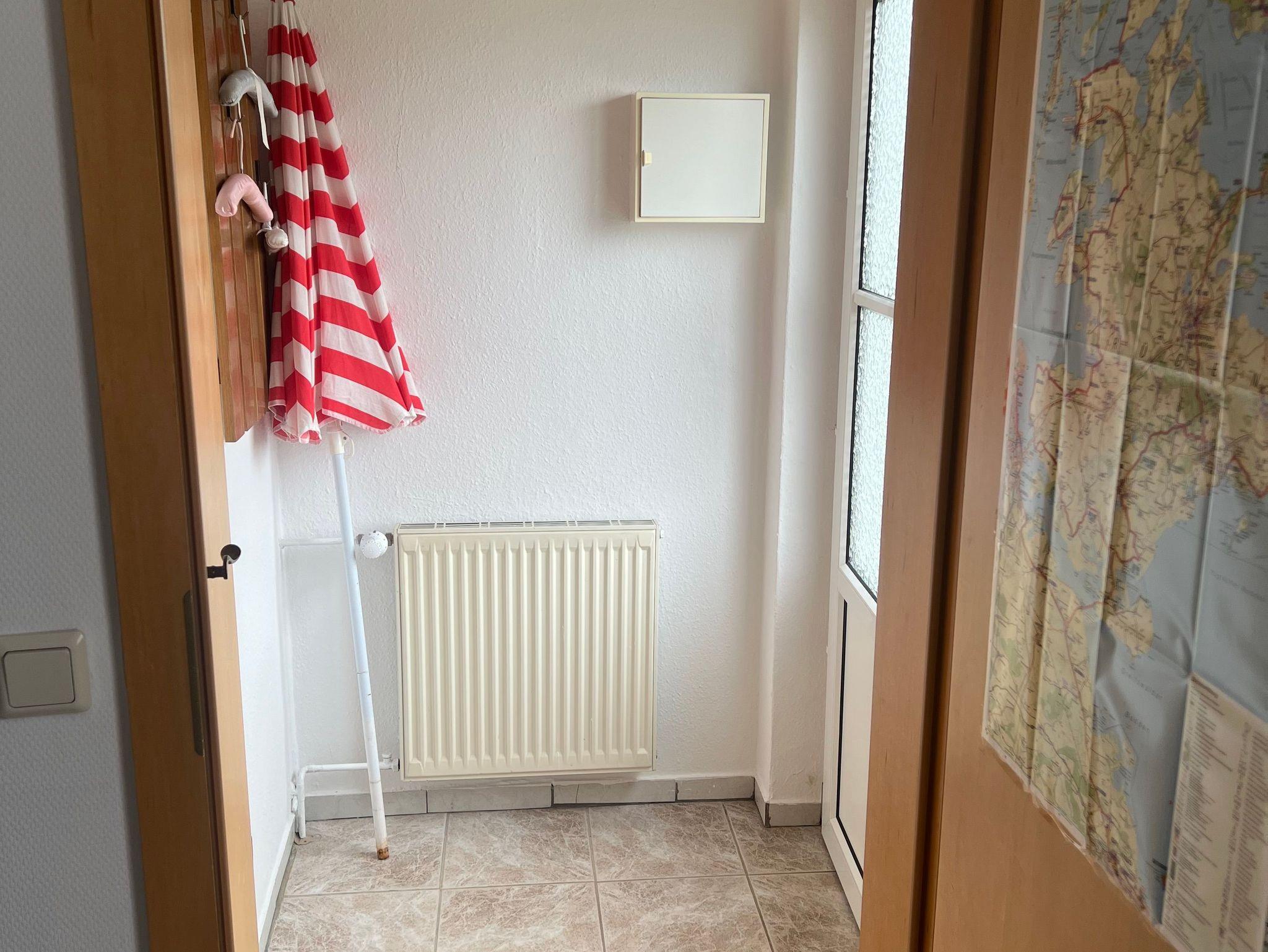 Auf der Sonnenterrasse vor der Wohnung finden Sie Tisch und Stühle.