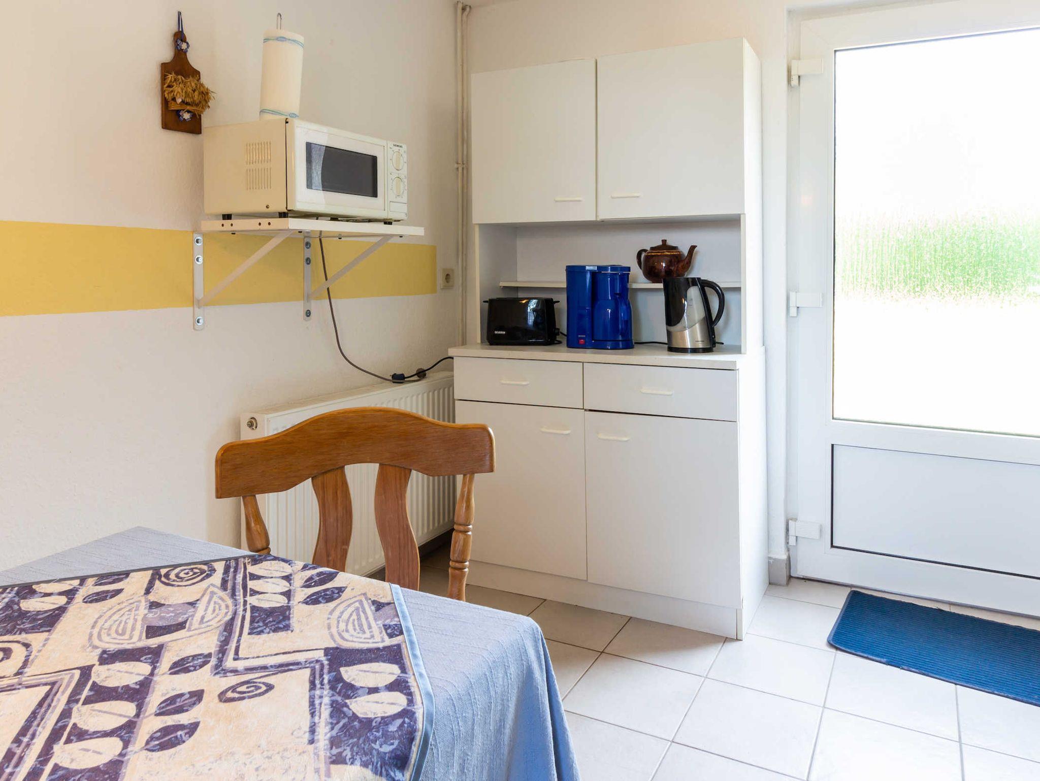 • Pantryküche, Essecke sowie Kaffeemaschine, Wasserkocher, Toaster, Kühlschrank, Kochgelegenheit