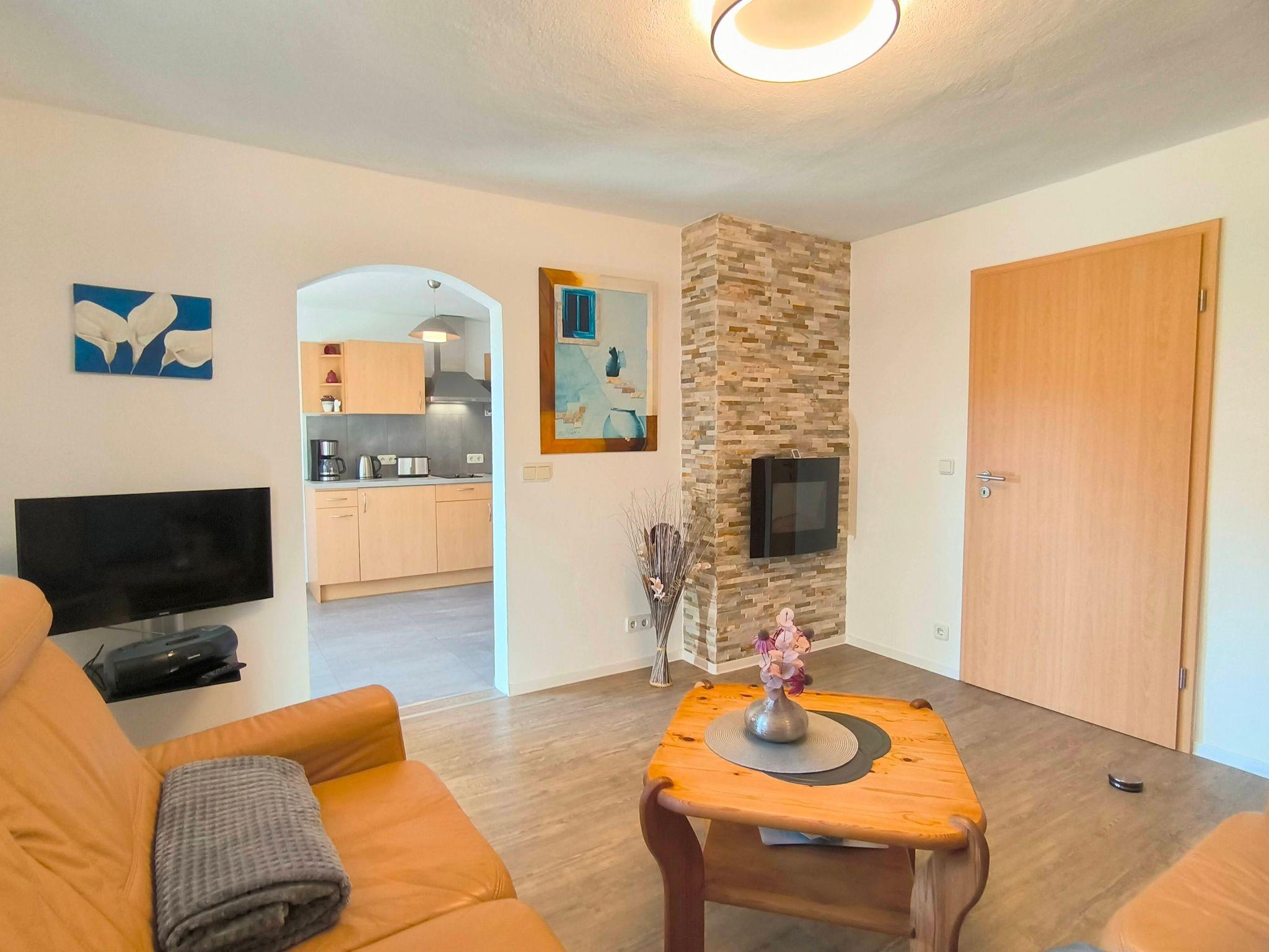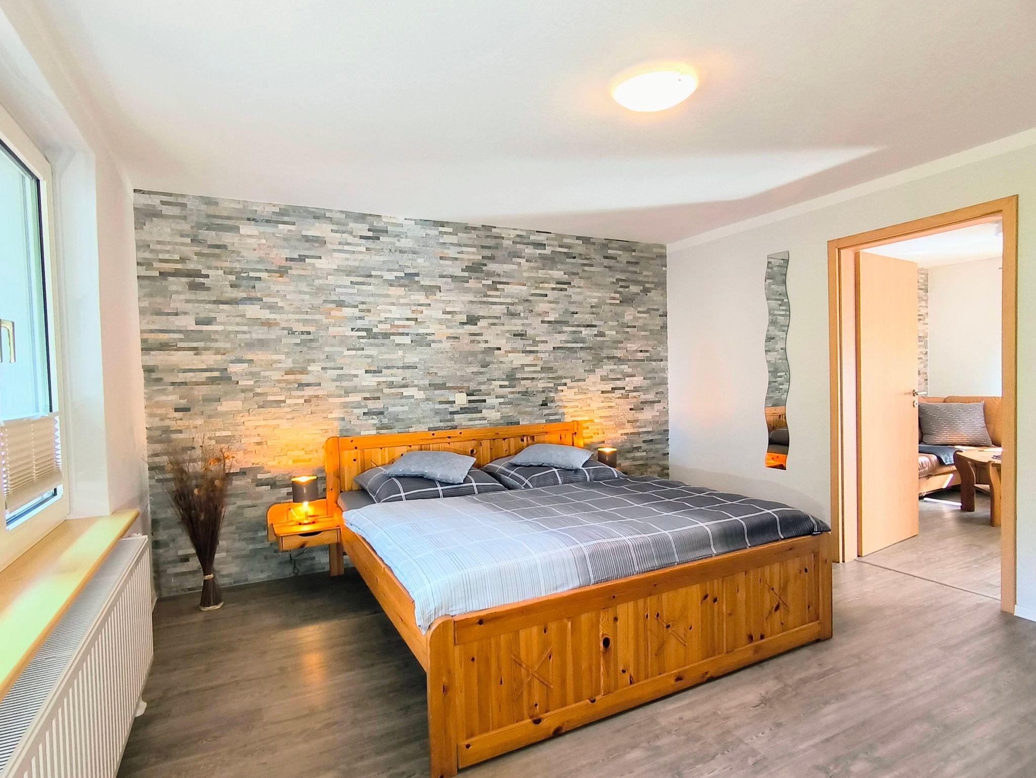 Unsere ca. 42m² große modern eingerichtete Ferienwohnung befindet sich im Erdgeschoß unseres Wohnhauses mit separatem Eingang in ruhiger Ortsrandlage.