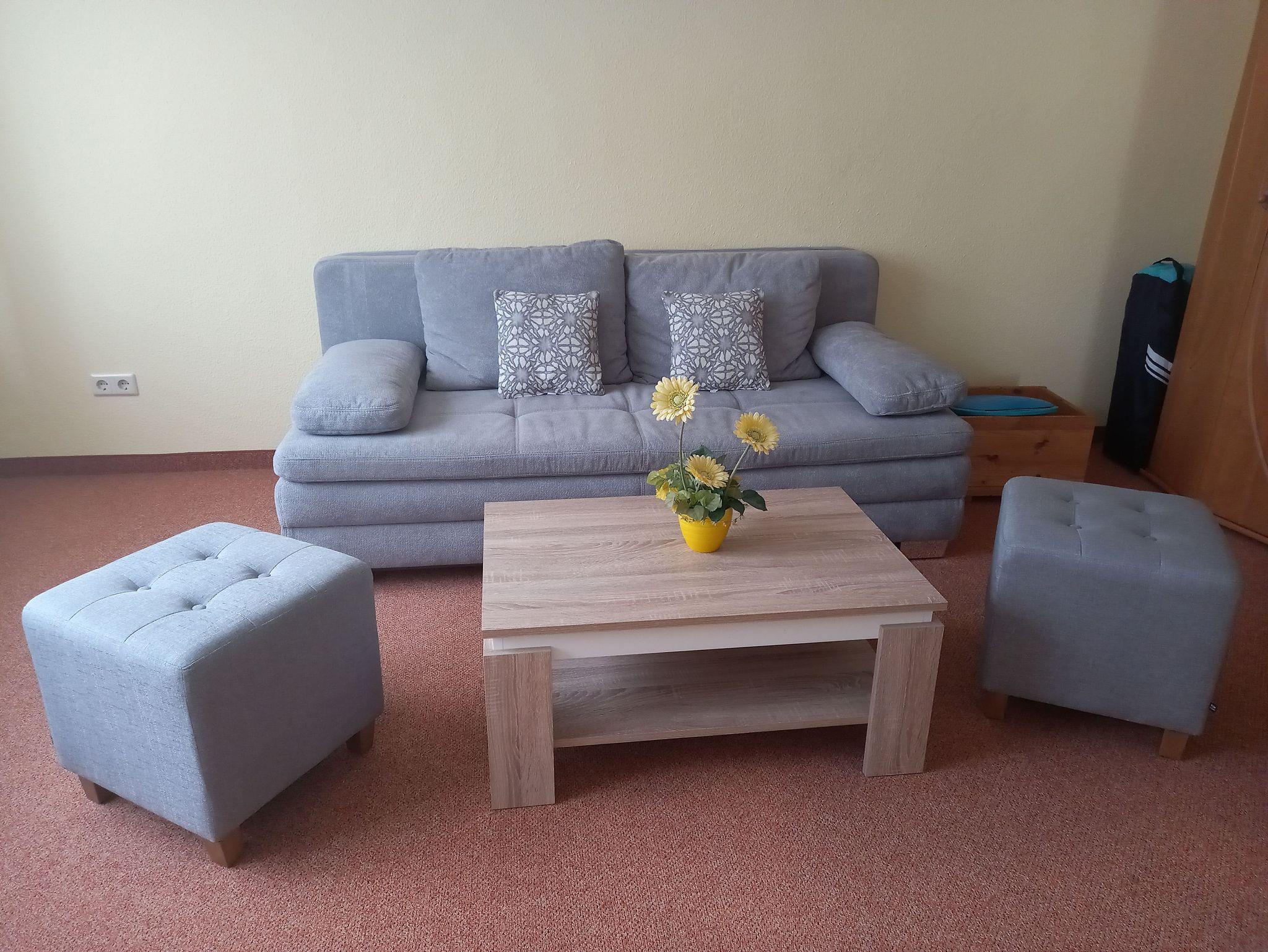 Die Ferienwohnung besteht aus einem Wohnraum mit Sitzgruppe (Schlafcouch) einem Schlafzimmmer mit Doppelbett, einer Küche mit Esstisch und einem Duschbad. Zu jeder Ferienwohnung gehört eine Terrasse. Auf dem großen Grundstück haben Sie Gelegenheit sich aktiv zu erhohlen.